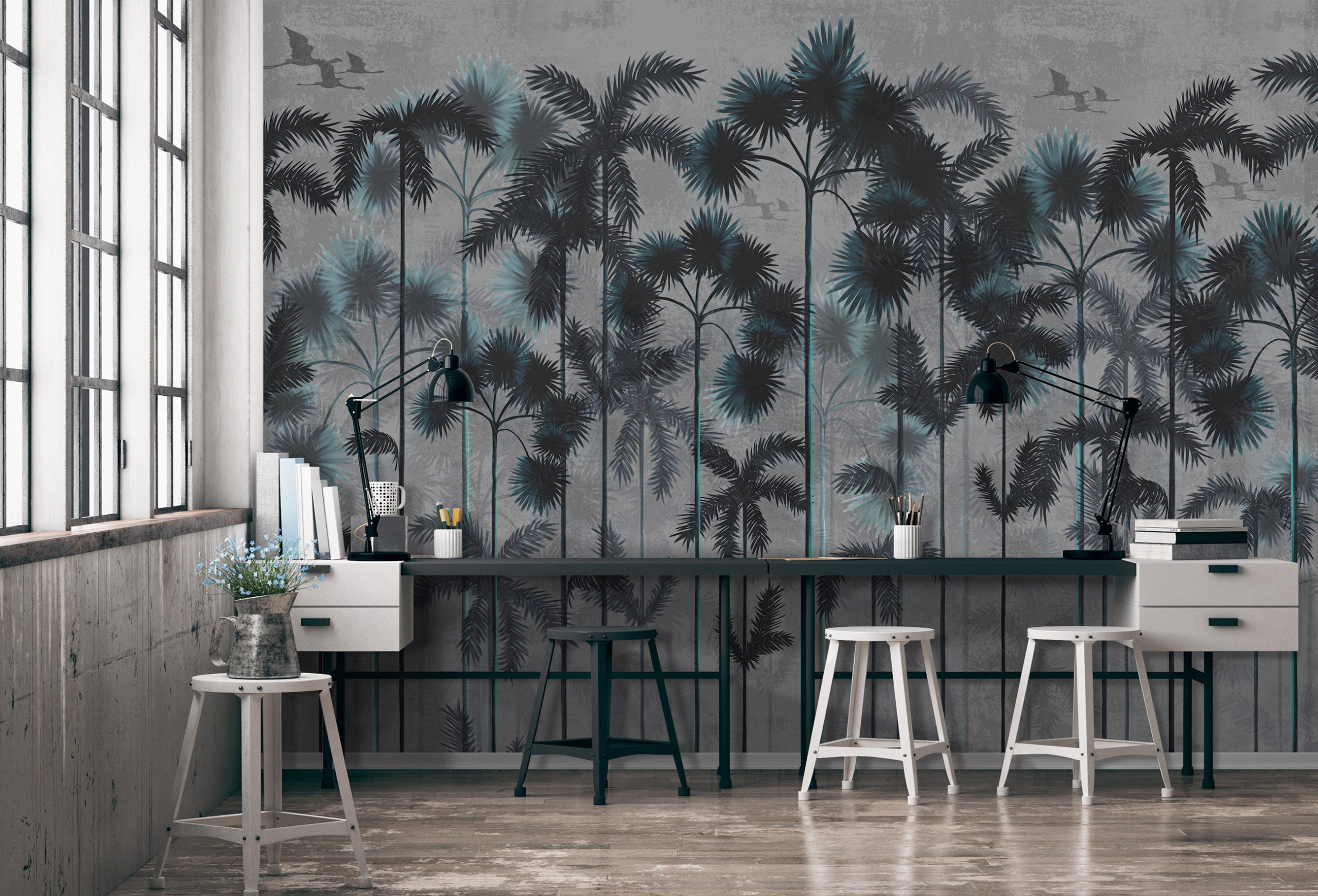 Trópusok egzotikus látványa jelenik meg előttünk az estü szürkületben. A pálmafák türkizes árnyalatban játszanak. A tájkép melankóliáját a repülő madarak hangsúlyozzák ki, melyek különlegessé varázsolják a képet.