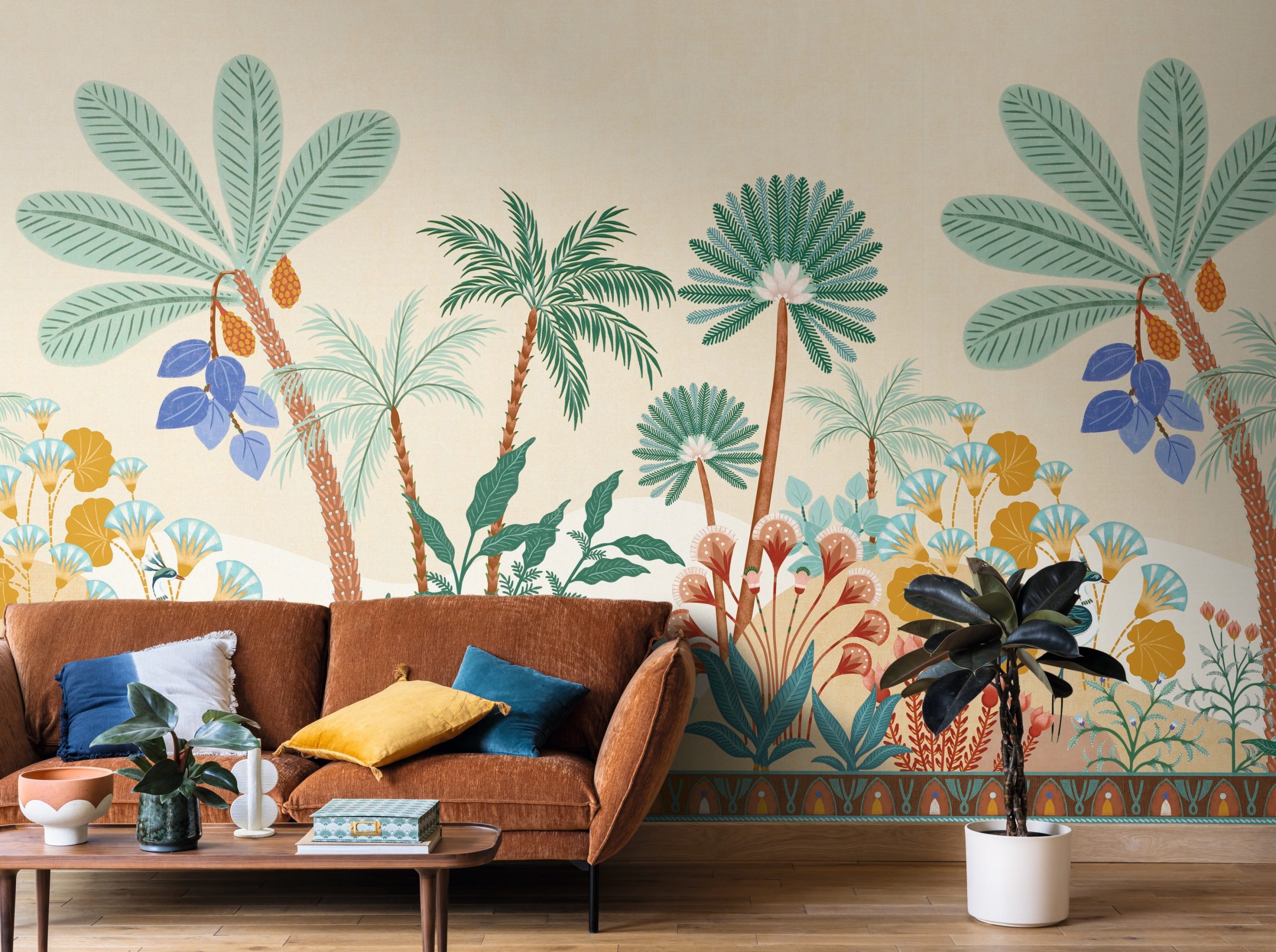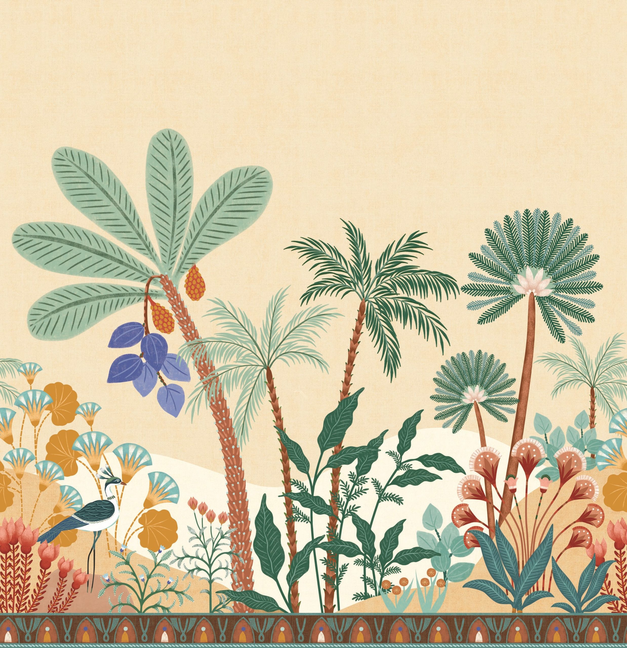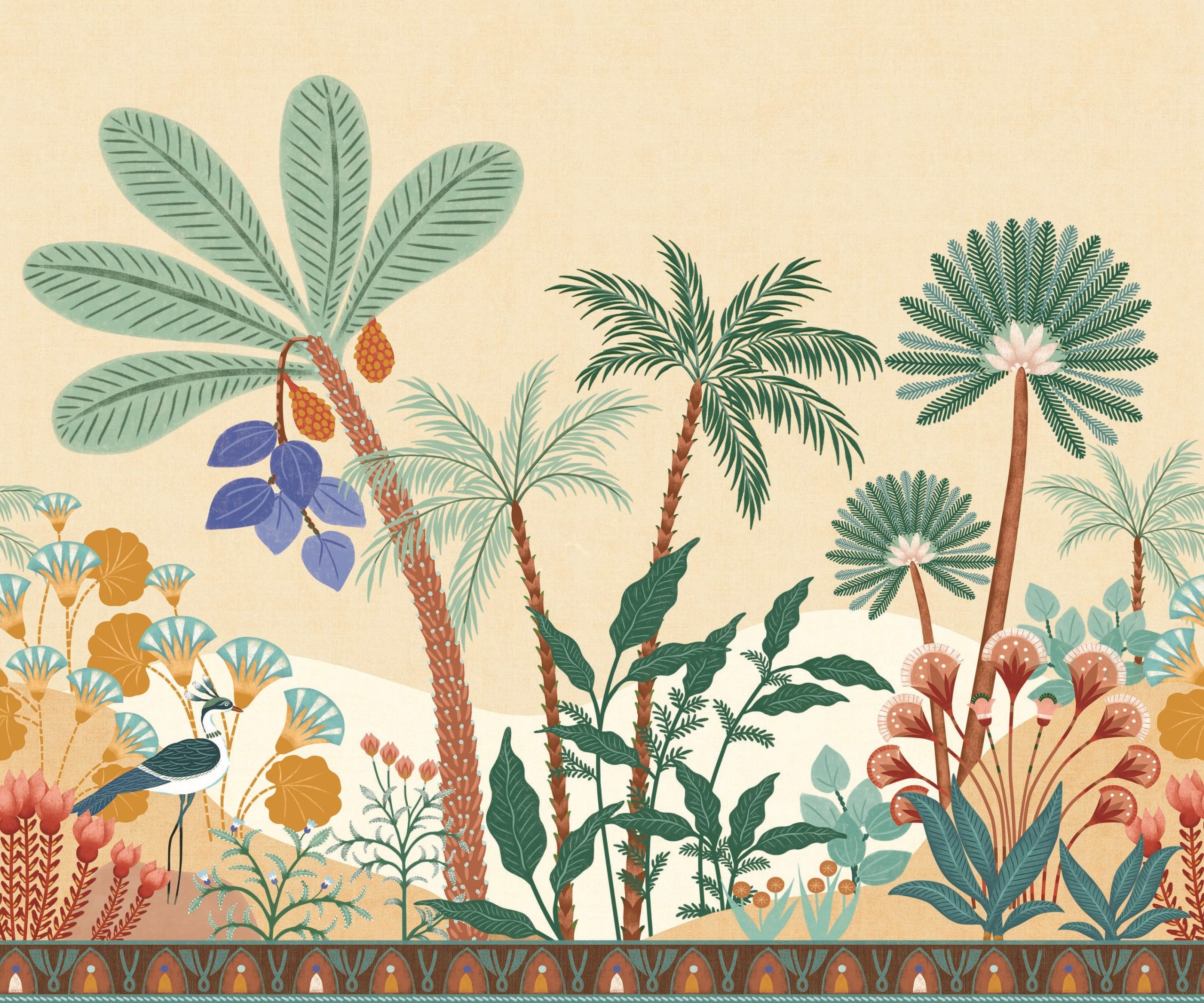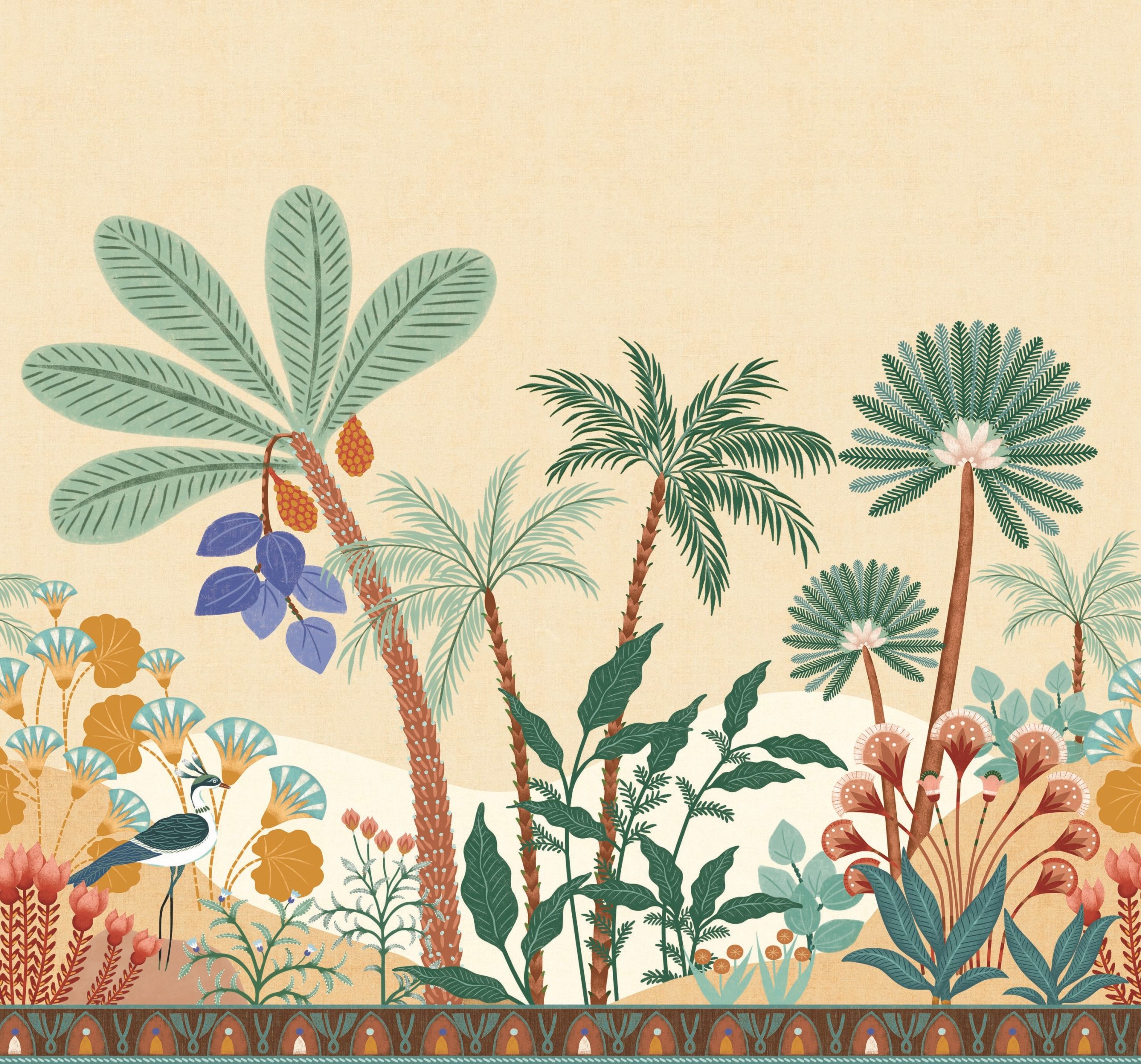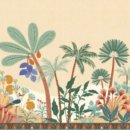 Francia vlies fotótapéta rajzolt mediterrán tájképpel, melynek színpompás világa messzi tájak szépségét idézik. Szakadj ki a hétköznapok unalmából! A fotótapéta igazi különlegessége a kép alján megjelenő dekorcsík.