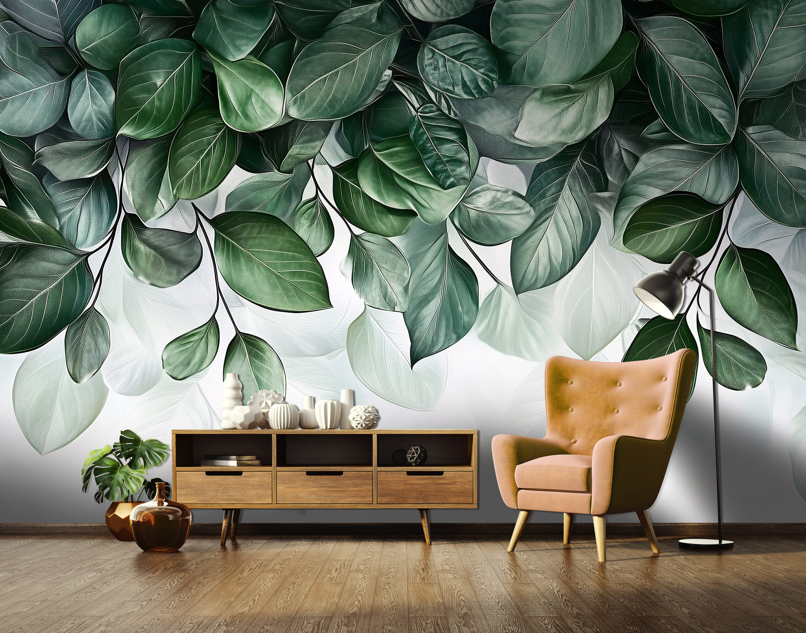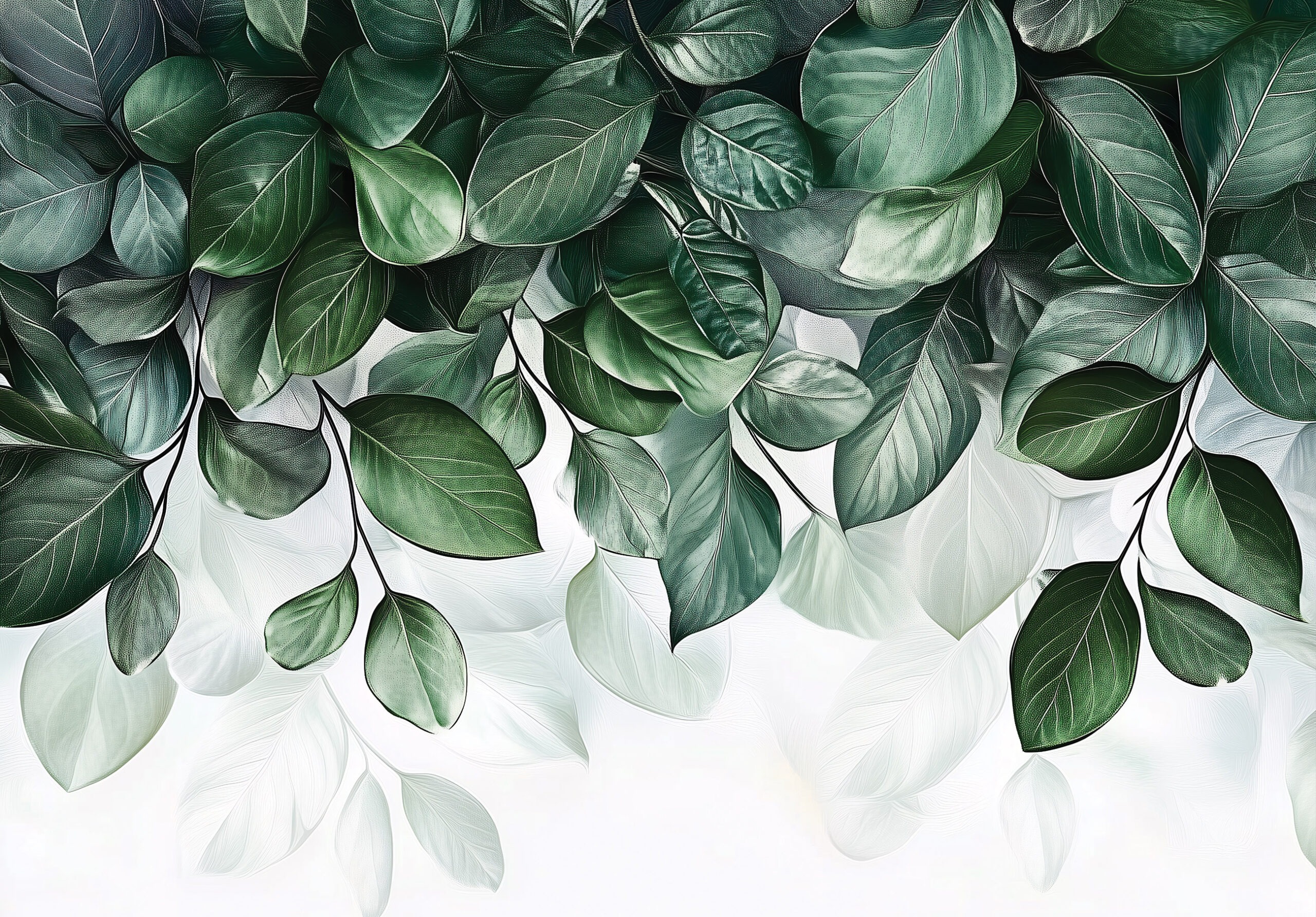Élettel teli zöld levelek díszítik ezt a fotótapétát, amely természetes frissességet visz a térbe. A világos árnyalatok könnyed hangulatot kölcsönöznek, így ideális választás nappalikba, étkezőkbe vagy akár irodákba is.