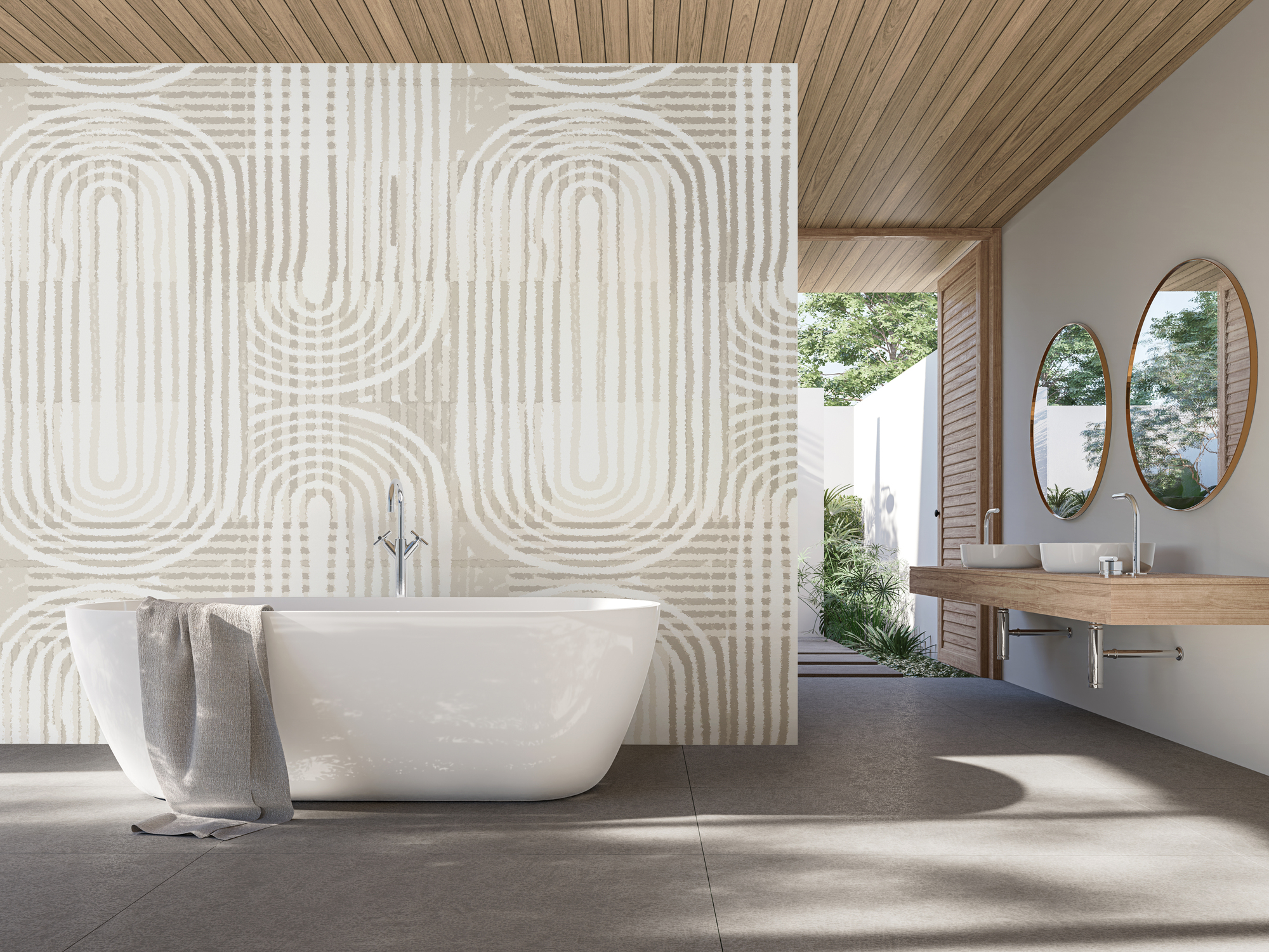 Modern geometriai mintás fotótapéta, melynek nagy méretű mintája látványosan dekorálja az enteriőrt.