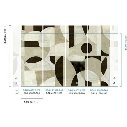 ✔ 424 cm széles x 260 cm magas (4 db 106 cm-es csíkból épül fel)