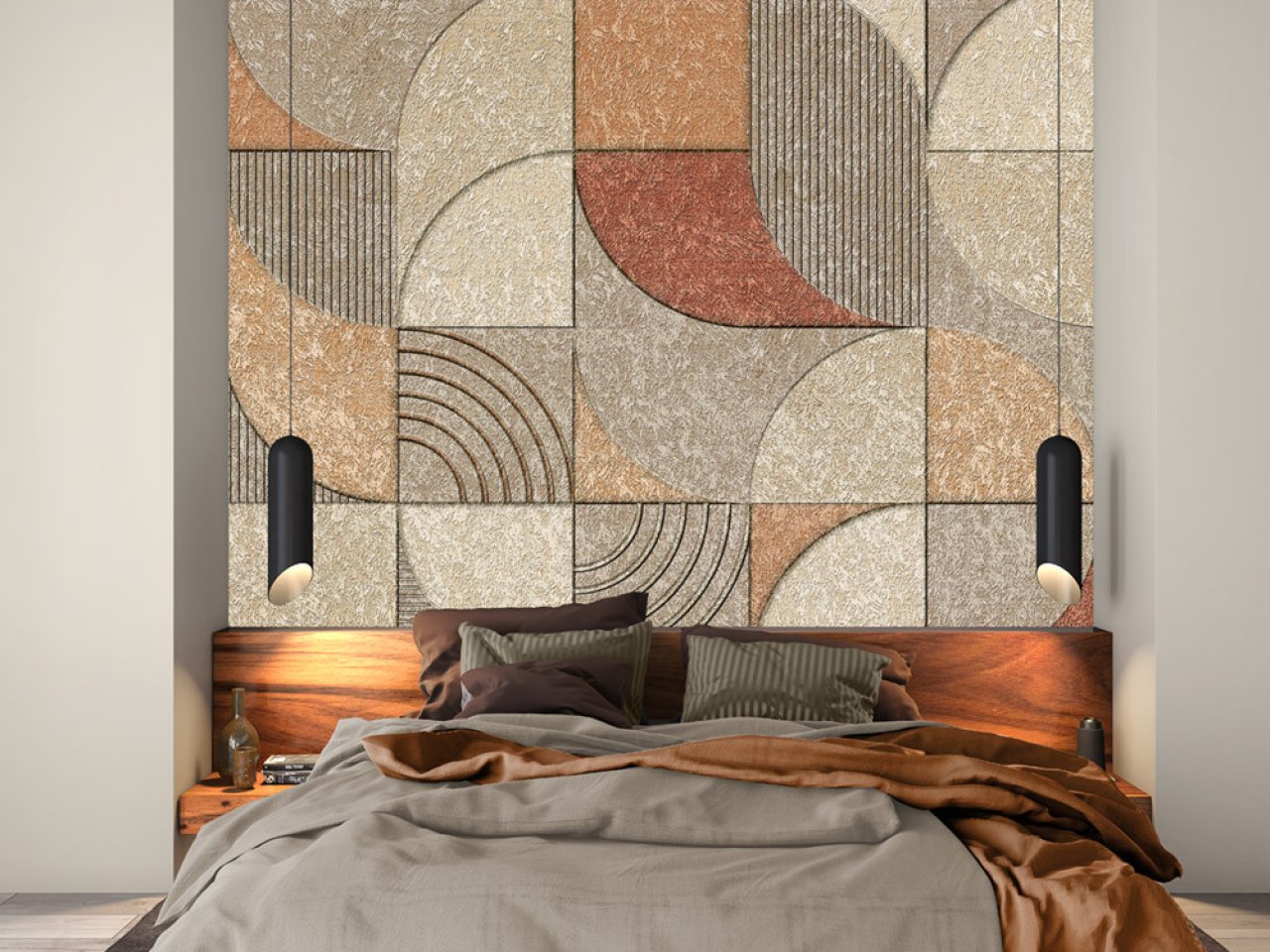 Geometriai mintás vlies fotótapéta kőhatású felület képével, mely a természet színeit és mintáit hozza be otthonunkba. Erőteljes, intenzív minta, mely kifejezi a természetben rejlő határtalan energiát, miközben megnyugtató harmóniát teremt.