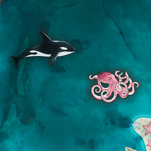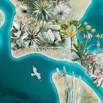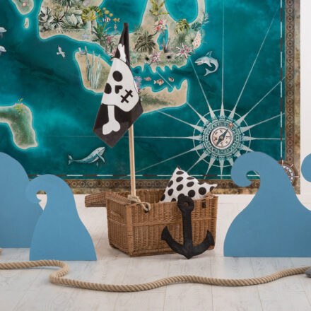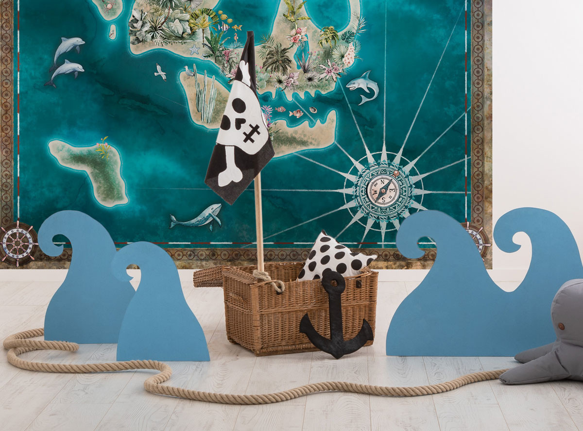 Gyerek fotótapéta kalóz sziget térképével. Fiatalok kalandra fel! Fotótapétánk nem csak izgalmas dekoráció lesz a gyerekszobában, de hátteret ad a kalandos játékoknak, hiszen a térképen látható sziget koponya formáját ölti.
