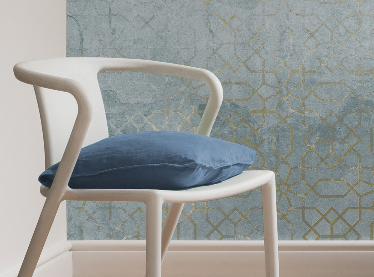 Az óceánok tiszta kékje inspirálta a tapéta színvilágát, melynek hűvös eleganciája különleges atmoszférát teremt az enteriőrben.