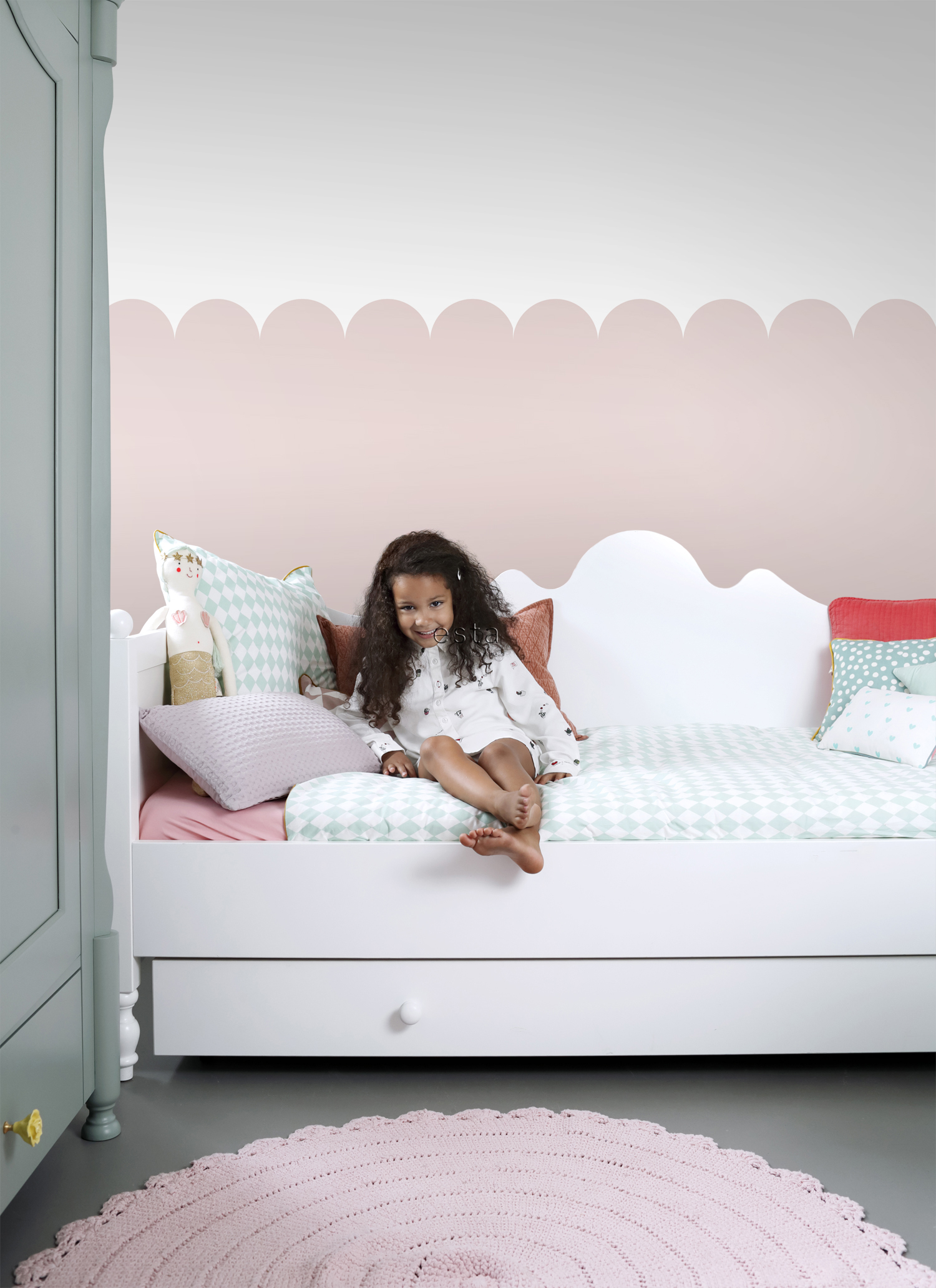 Skandináv stílusra jellemző, letisztult mintával rendelkező fotótapéta gyerekszobába. Köszönhetően a visszafogott minta és színvilágnak jól párosítható más gyerekszoba dekorációkkal.