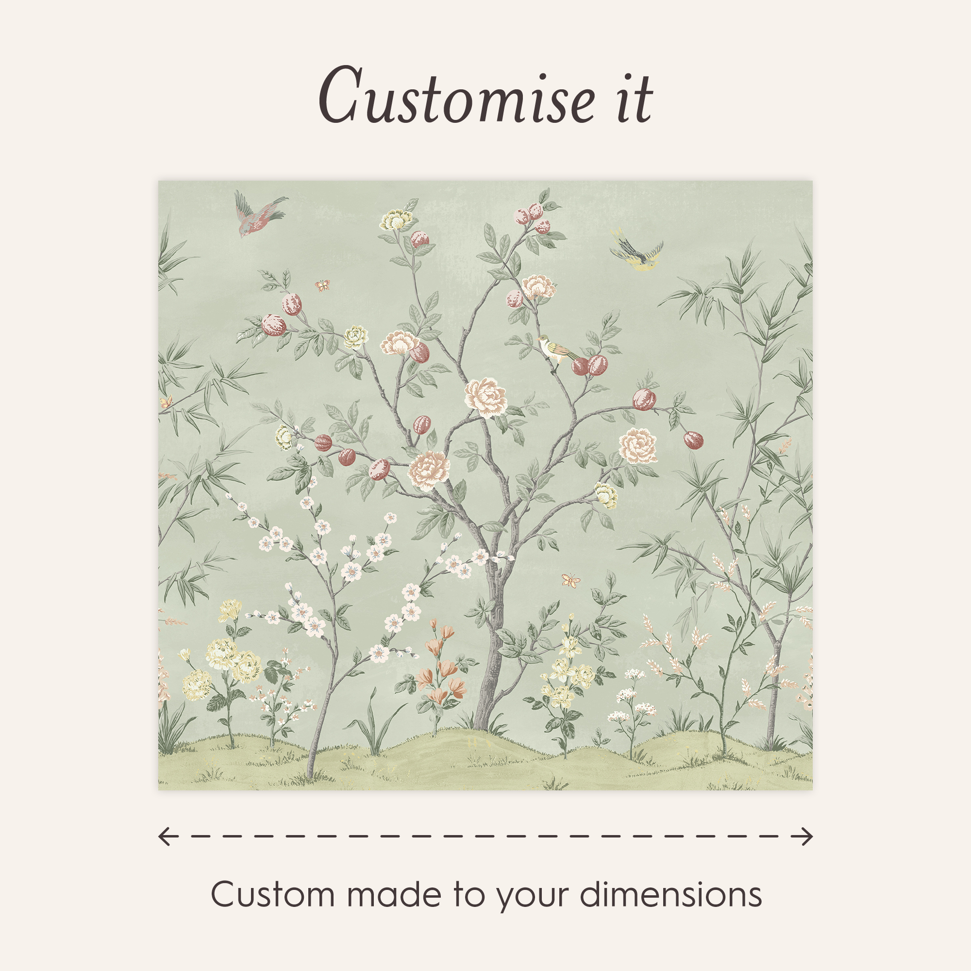 Laura Ashley poszter tapétáján különleges szépségű rózsafa látható repkedő madarakkal kiegészítve. Romantikus atmoszférát teremt látványos mintájával és kellemes színárnyalatával.