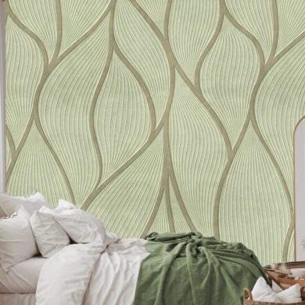 Halvány zöld fotótapéta hullám mintával, melynek 3d hatása modern enteriőrt teremt.