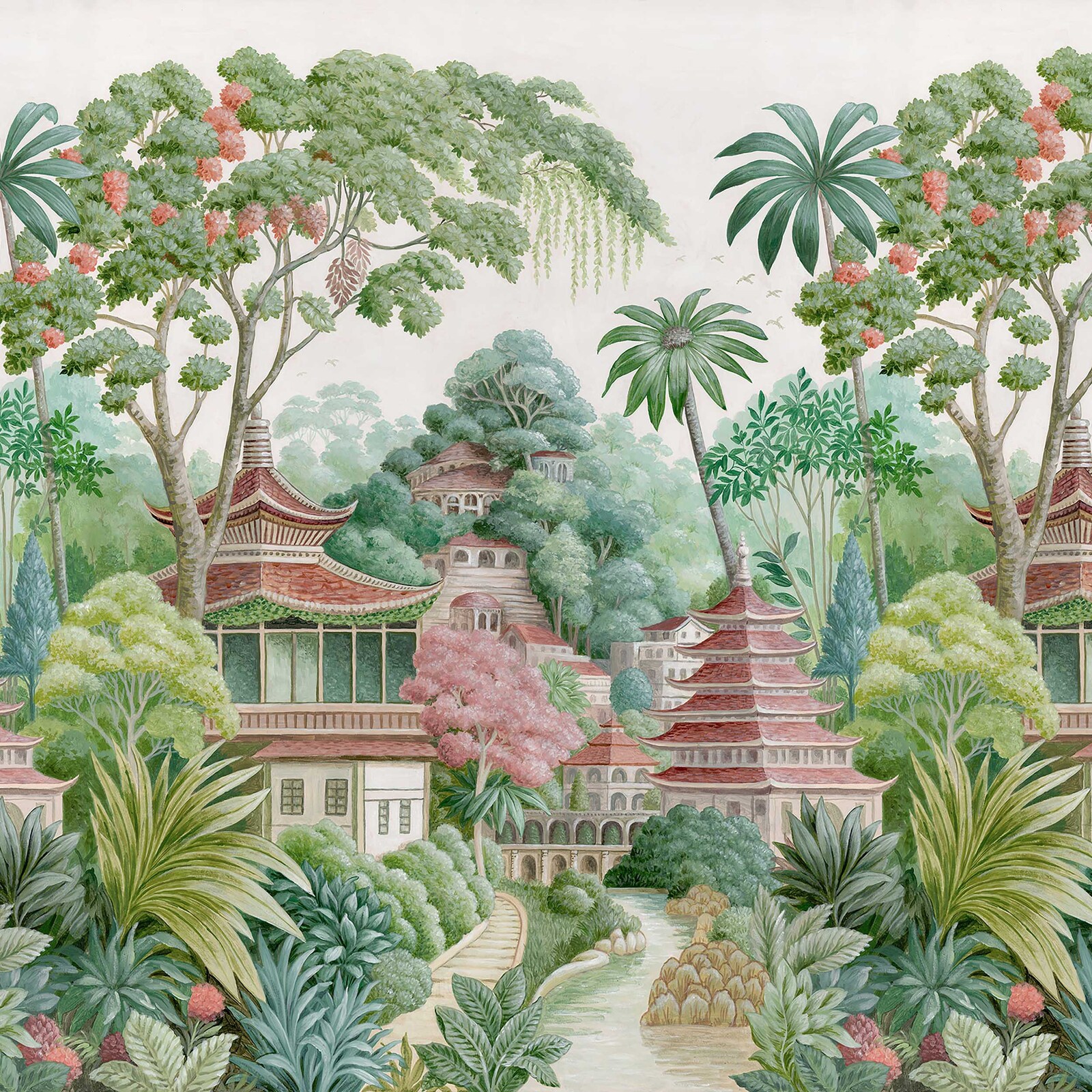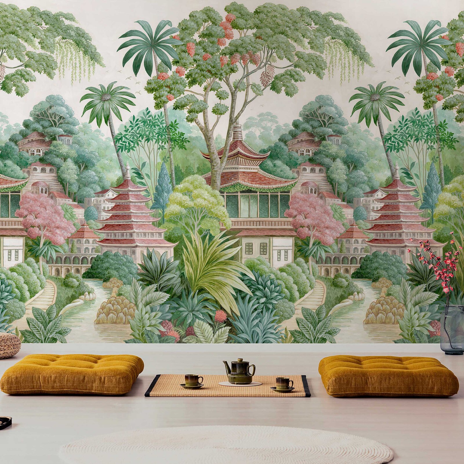 Lépj be egy rejtett világba, ahol a spirituális szépség és a természet harmóniája ölel körül. A gazdag, zöld tájban megbúvó díszes pagodák nyugalmat és misztikumot sugároznak, míg az ösvények titkos kerteket és eldugott zugokat sejtetnek – mintha egy keleti legenda elevenedne meg a falon.