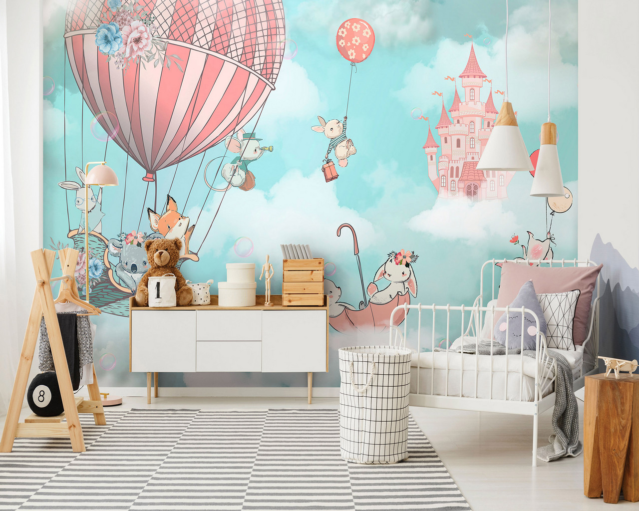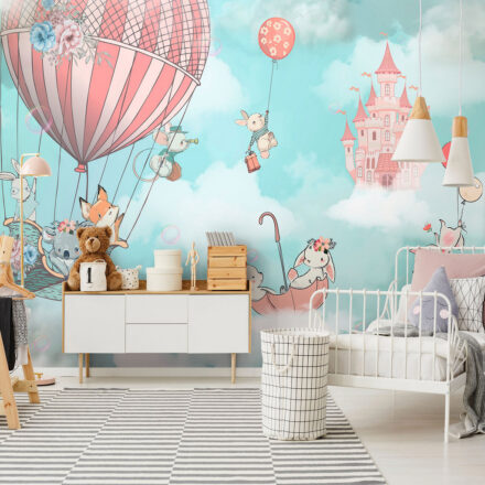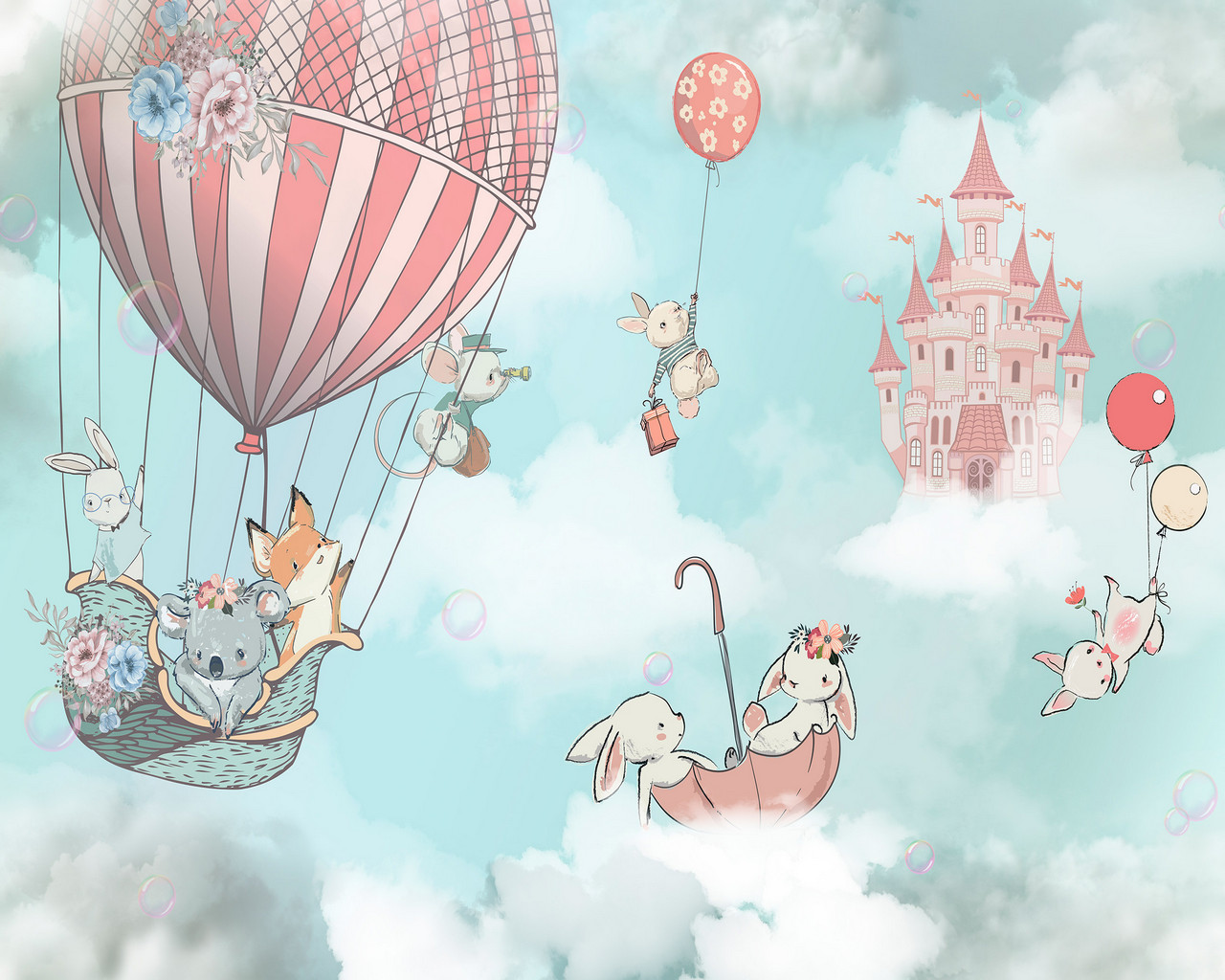 Irány a felhők feletti világ! Nyuszik, egérkék és más állatok utaznak hőlégballonon a felhők között úszó kastályba.