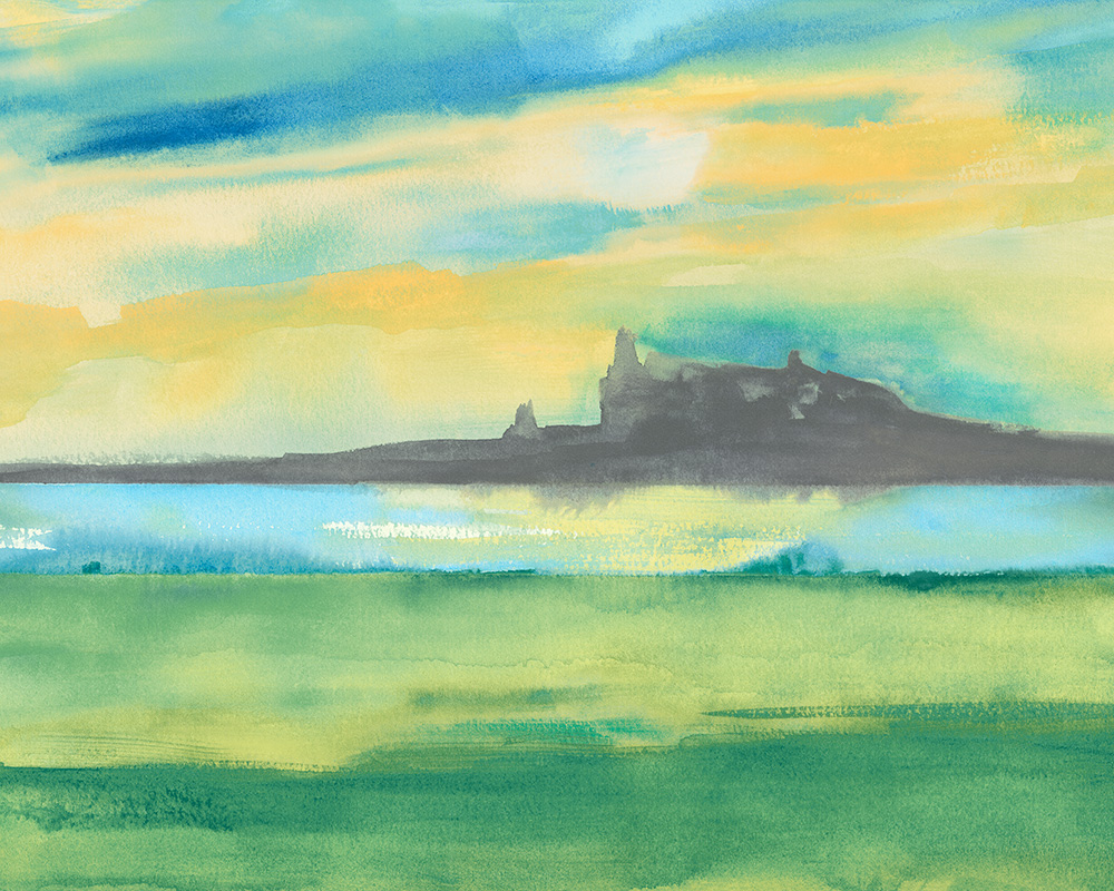 Impresszionista festményt ábrázoló fotótapéta kék – sárga árnyalatban, melynek térnövelő hatása van az enteriőrben, miközben színeivel hangulatossá varázsolja az enteriőrt.