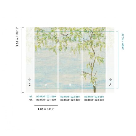 A tapéta sorolható, így több panel is egymás mellé helyezhető mintaillesztéssel.