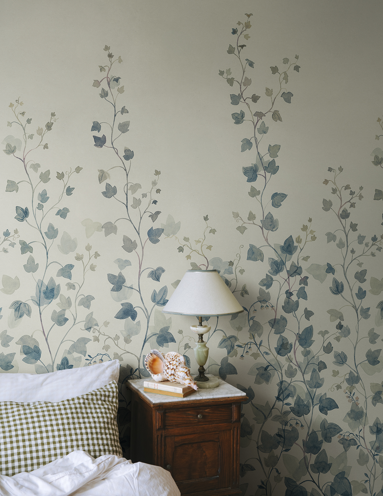 Ez a finom akvarell technikával készült fotótapéta egy áttetsző, légies borostyánfüggönyt idéz, amely természetes mélységet és nyugodt harmóniát visz a térbe. A kecsesen kúszó levelek rétegzett hatása barátságos, friss hangulatot teremt, miközben nem nyomja el a teret – inkább megnyitja azt.