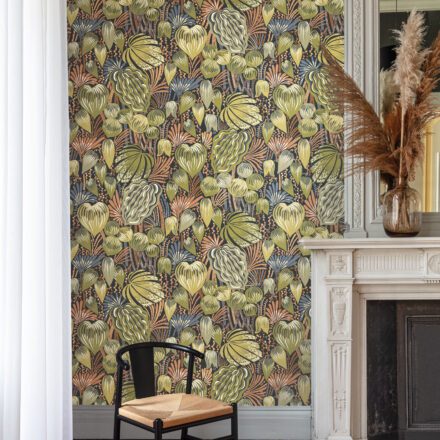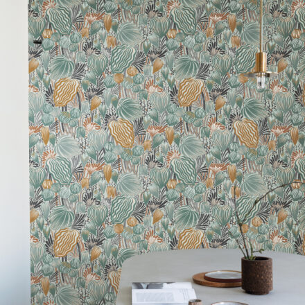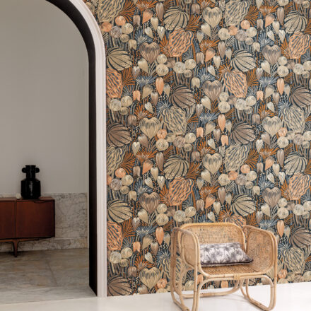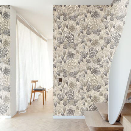 Pomona az erdők, gyümölcsös kertek istennője a római kultúrában. Alakja inspirálta a fotótapétát, melynek mintáját levelek, bogyók és további organikus minták szövik át modern változatban. Részletgazdag mintája magával ragadó látványt nyújt a falon.