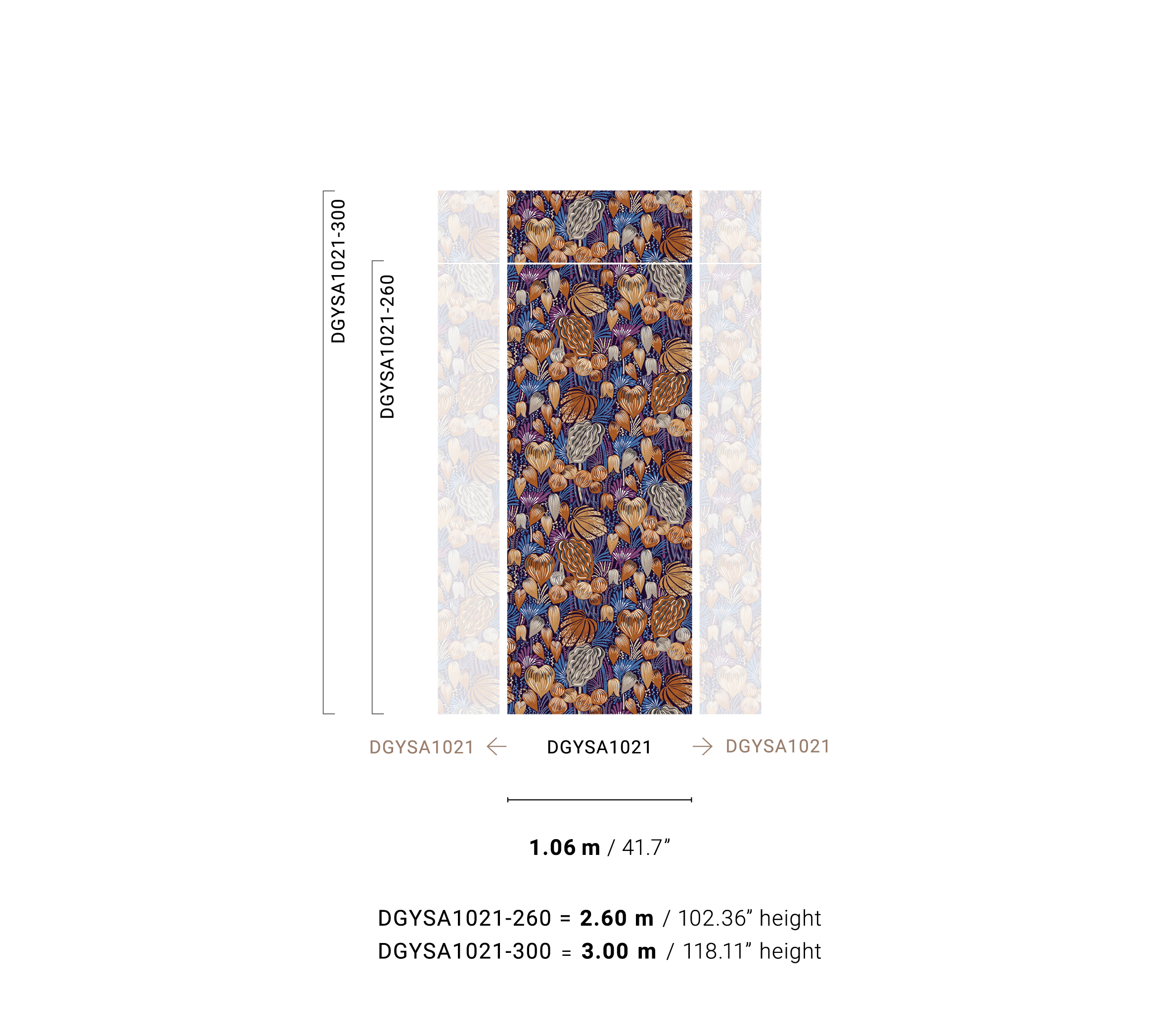 A tapéta sorolható, így több panel is egymás mellé helyezhető mintaillesztéssel. A tapéta 300 cm magas változatban is rendelhető, érdeklődés esetén kérje árajánlatunkat.