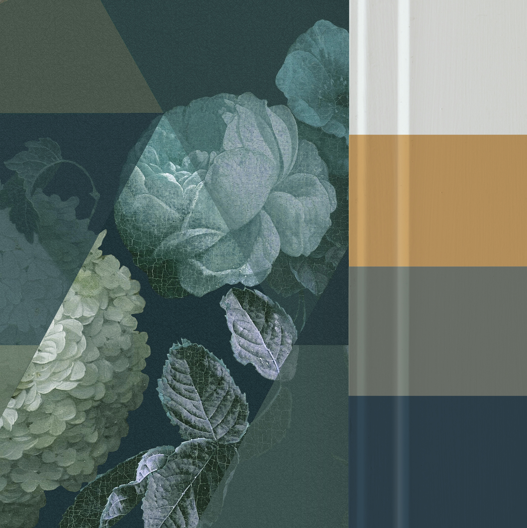 A klasszikus virág mintát kombinálja a tapéta a modern geometriai formákkal. Gyönyörű kompozíció, mely tökéletes éke lesz otthonodnak.