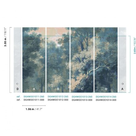 Exkluzív fotótapéta a Khromától, melyen a kékes árnyalatú lombos fák harmonikus képe tárul elénk.