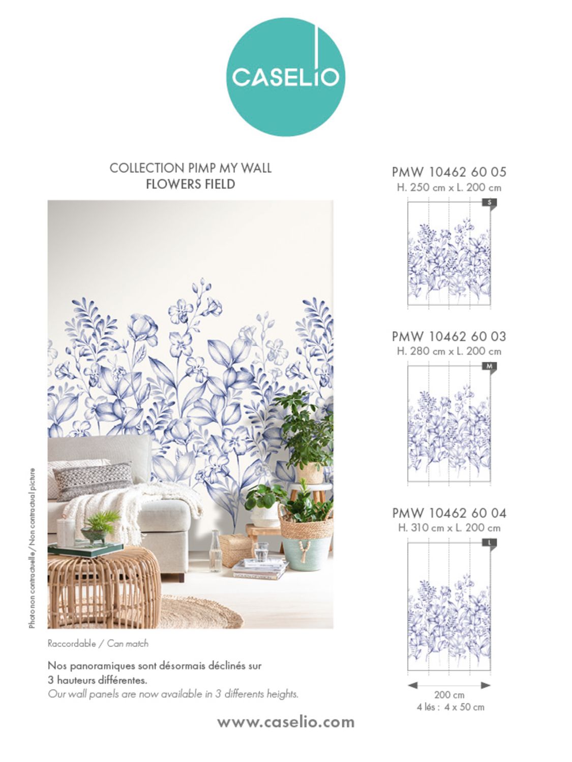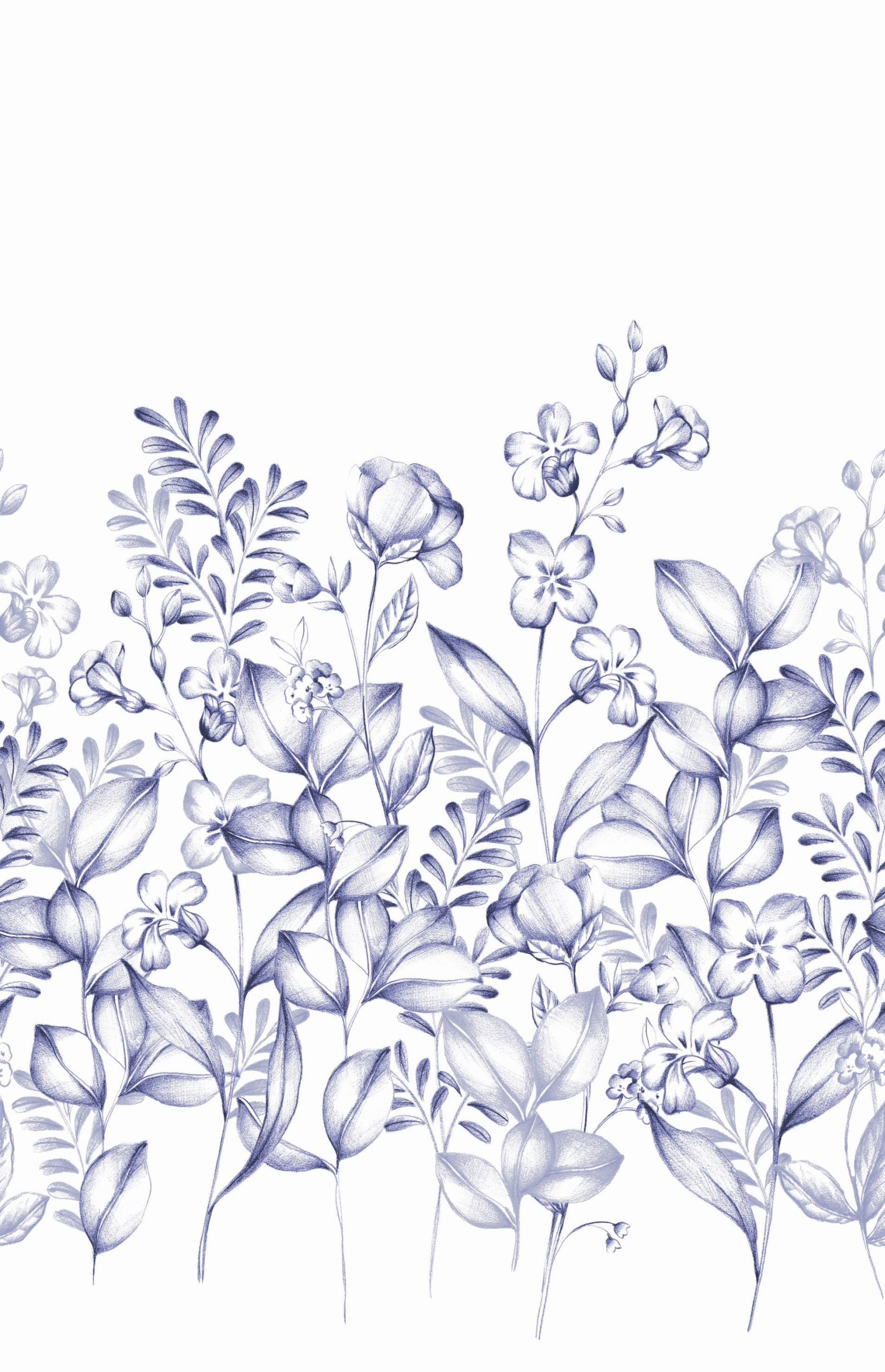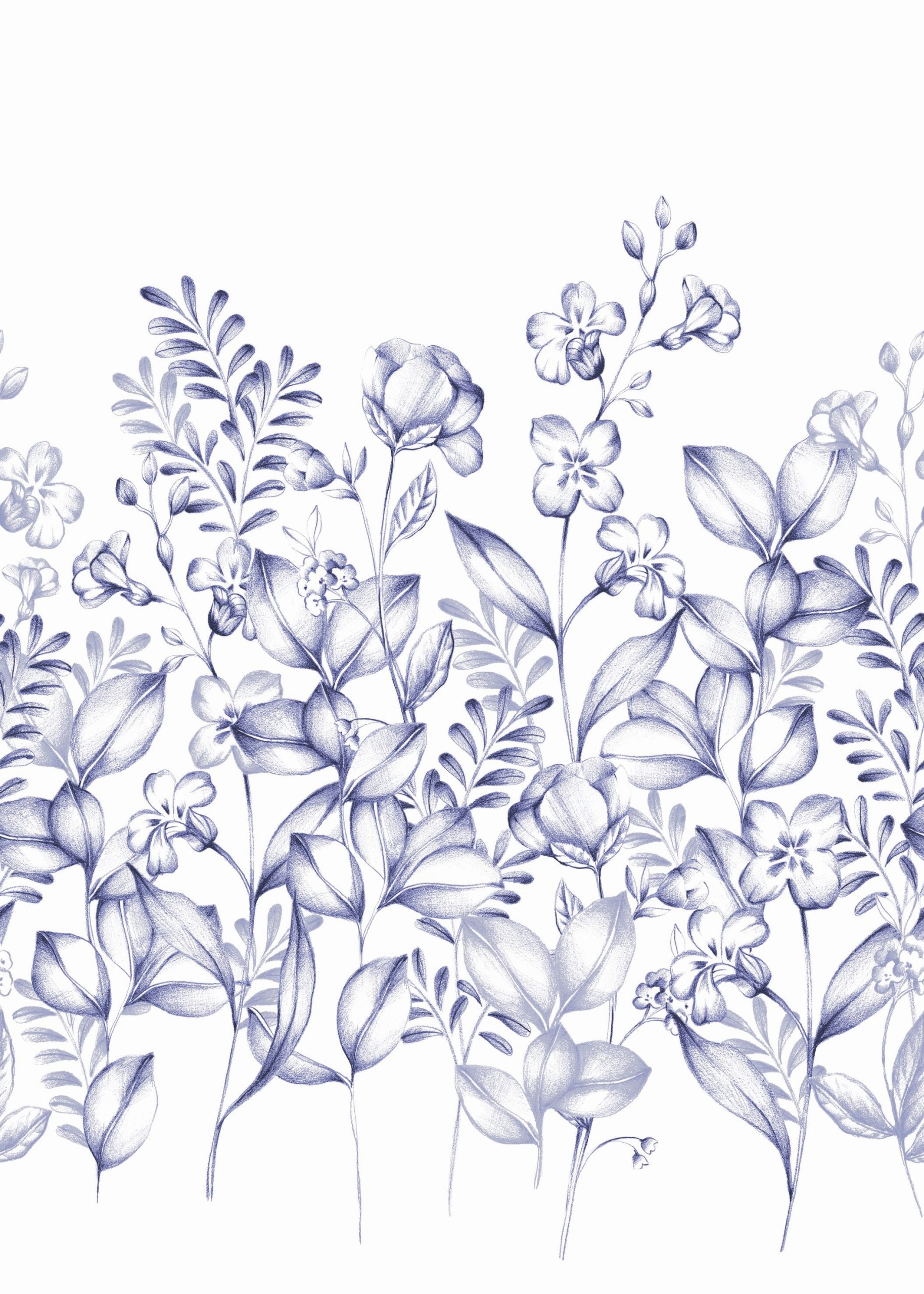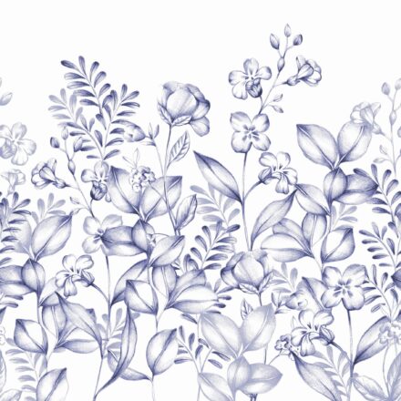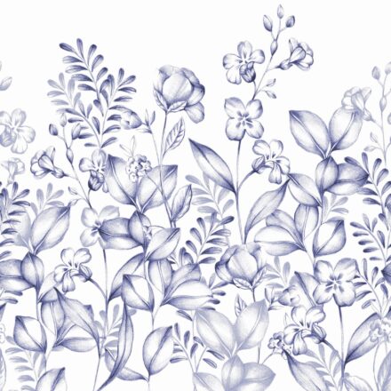 Kék rajzolt virágos fotótapéta, melynek digitális nyomata igazi falfestmény érzetét kelti.