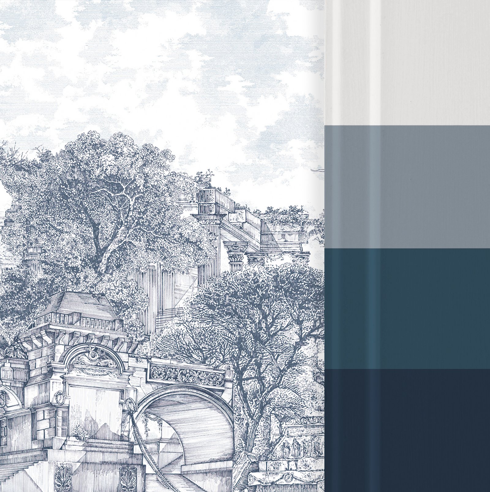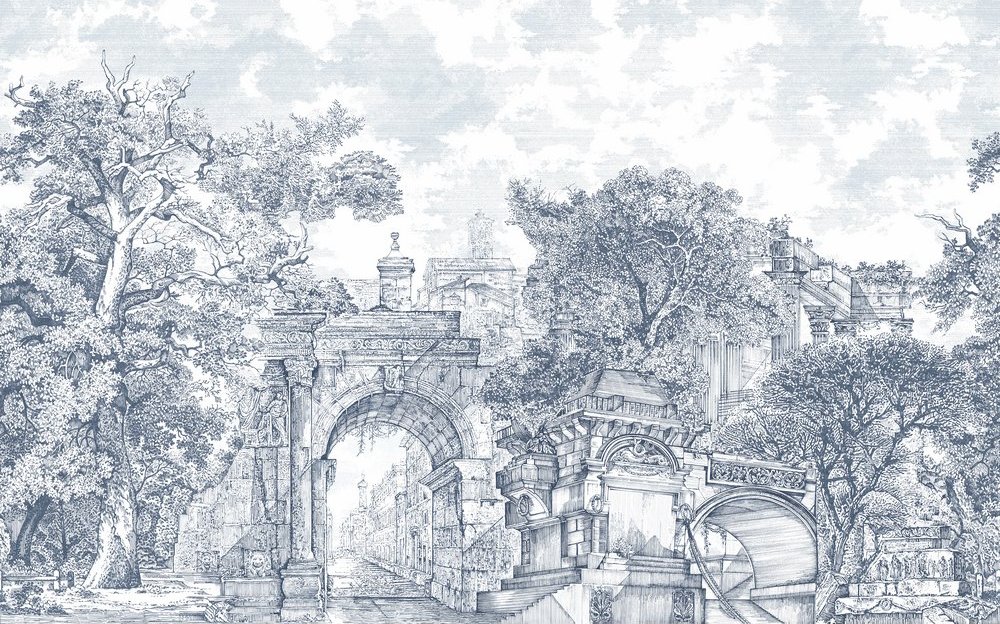 Engedd, hogy otthonod falai egy letűnt kor eleganciáját idézzék ezzel a különleges, részletgazdag monokróm fotótapétával! Az aprólékosan kidolgozott tájkép fák ölelésében megbúvó antik építményeket ábrázol, finoman megidézve a történelmi arborétumok, kastélykertek és régi parkok hangulatát.