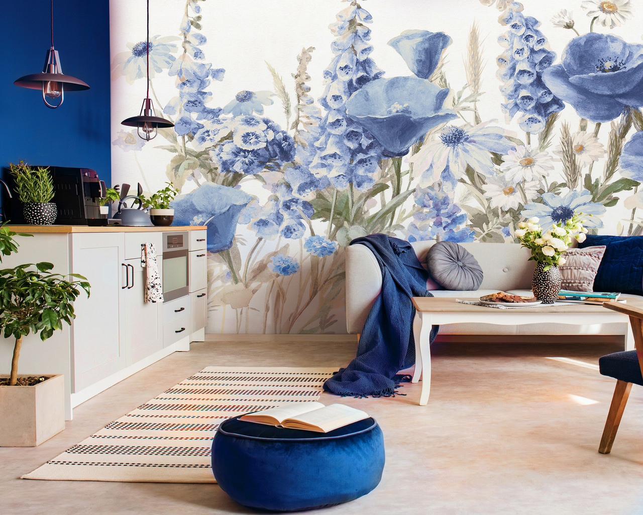 Falfestmény hatását kelti a fotótapéta, melyen a nagy méretű virágok akvarell formában jelenik meg. Különleges fotótapéta, mely design tekintetében messze kiemelkedik a szokásos fotótapéták közül.