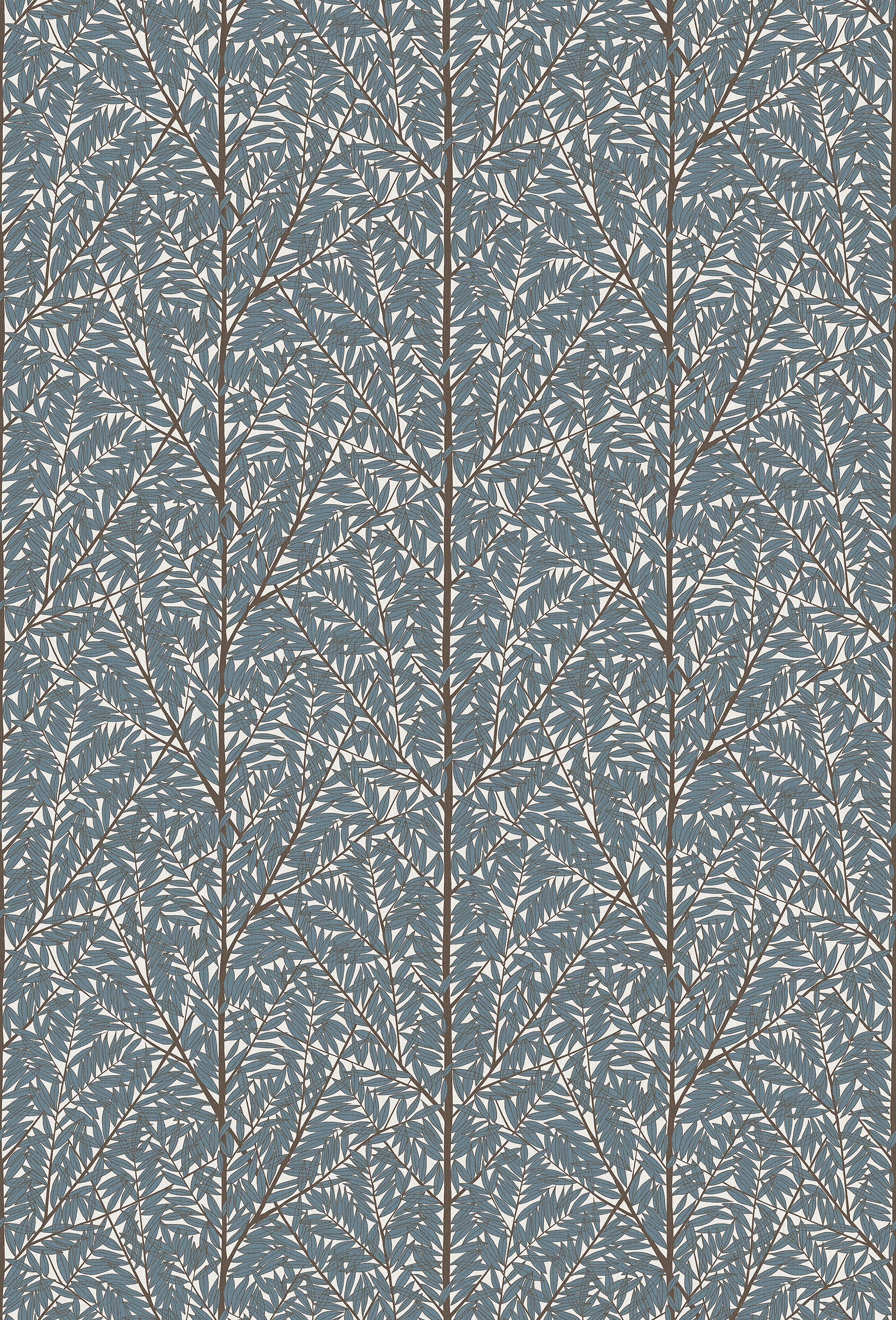 Skandi faág mintás fotótapéta, melyen a levelek kékes árnyalatban jelennek meg. A skandináv stílust kedvelők számára ajánljuk a fotótapétát, hiszen természetközeli mintájával otthonos hangulatot teremt az enteriőrben.
