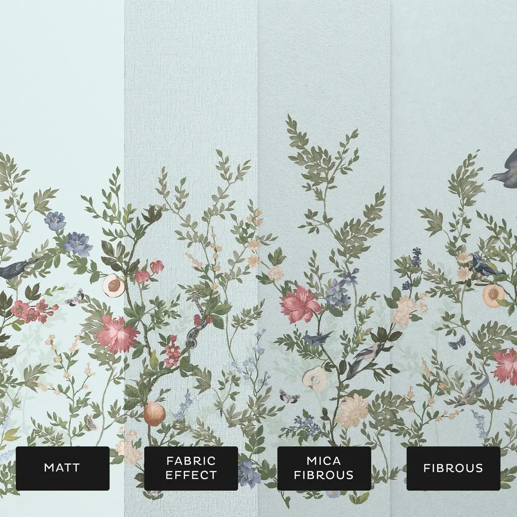 A kék virágos – madaras prémium fotótapéta a természet varázslatos világát hozza be otthonodba, ahol madarak, virágzó ágak és gyümölcsök bontakoznak ki a háttér színen. A részletgazdag design egyszerre friss és megnyugtató, így tökéletes választás, ha szeretnél egy természetes, mégis kifinomult atmoszférát teremteni.