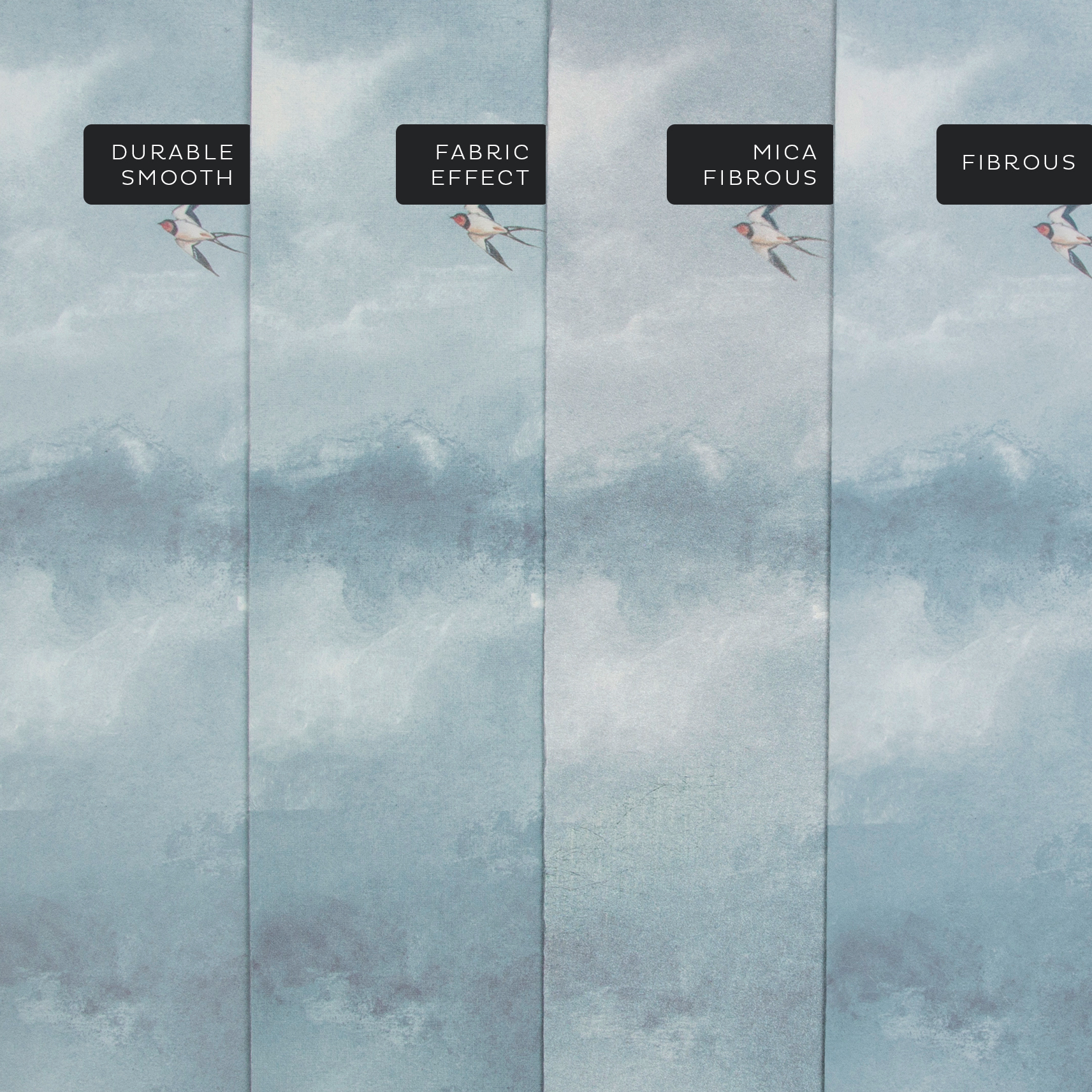 Harmonikus fotótapéta felhős égbolttal, melyen fecske madarak boldog reptét láthatjuk. Időtlen elegancia és harmonikus atmoszféra jellemzi.
