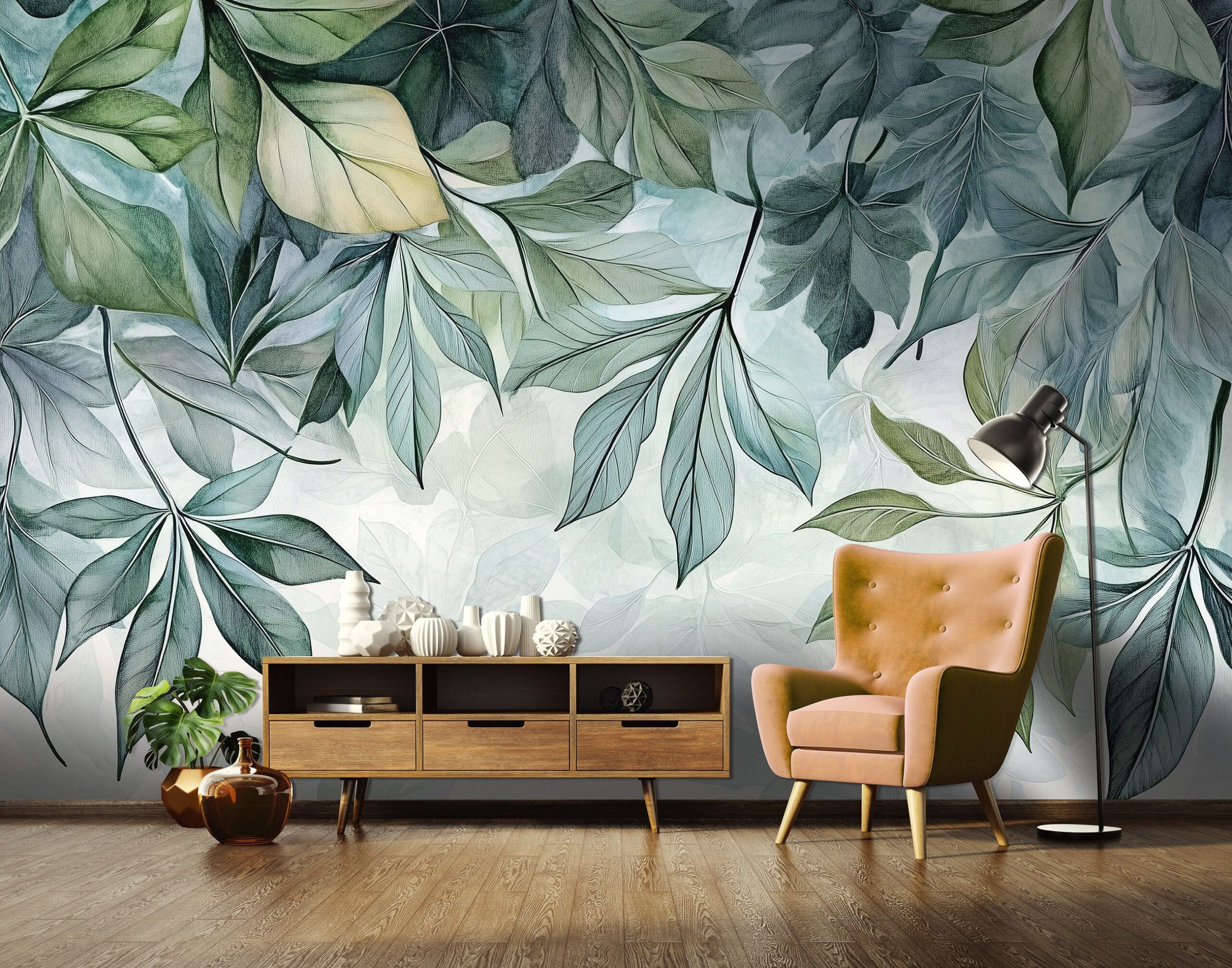Kékes zöld árnyalatú levelek fotótapéta – különböző zöld tónusokban játszó levelek frissességet és nyugalmat sugároznak. A részletgazdag grafika természetes, modern atmoszférát hoz létre, amely nappalikba és hálószobákba is tökéletesen illik.