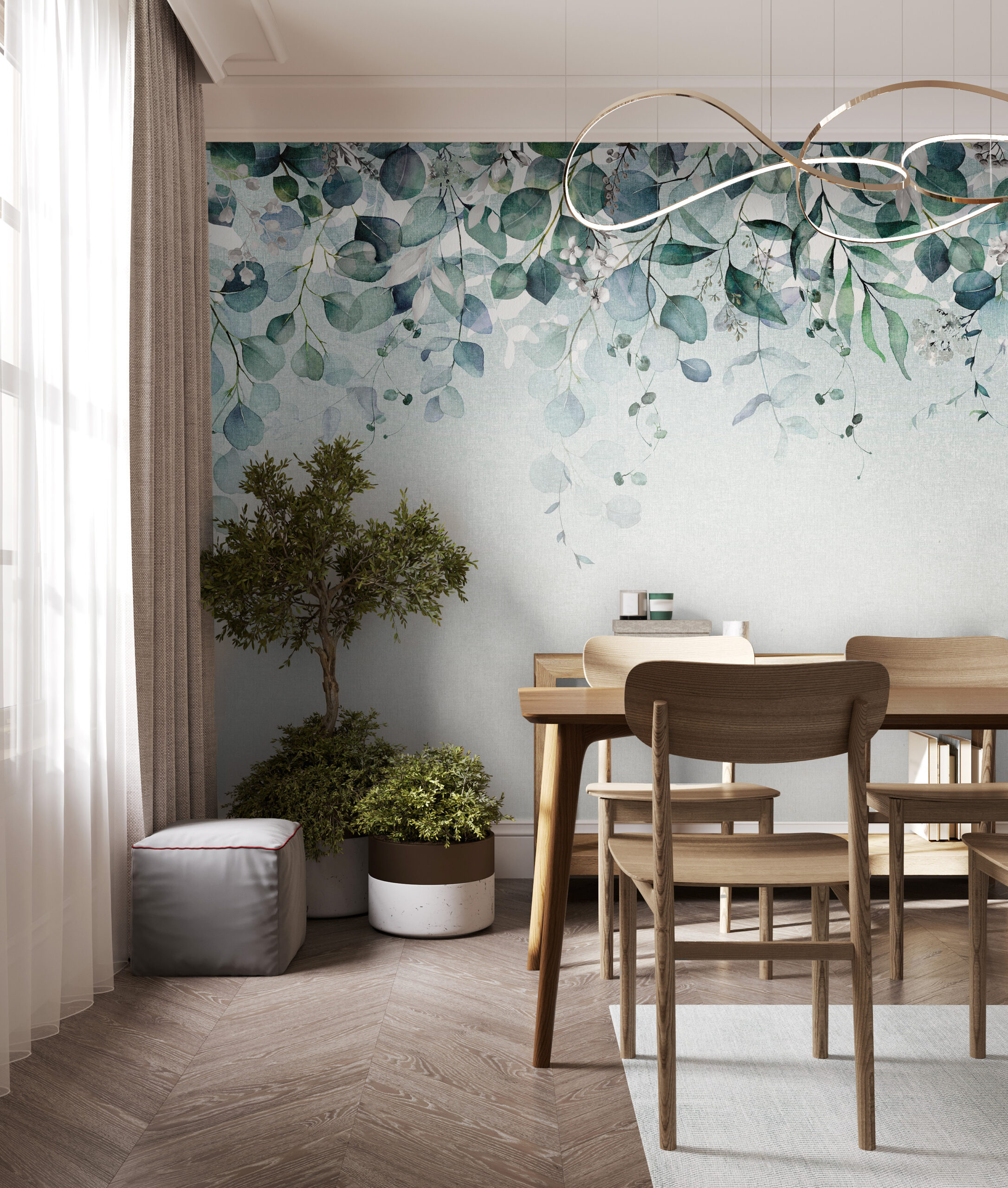 Kékes zöld levélmintás prémium vlies fotótapéta, melynek könnyed, hangulatos mintája feldobja otthona hangulatát. Az akvarell jellegű minta alapját kellemes színátmenetek adják, mely hozzájárul a fotótapéta egyedi, magával ragadó hangulatához.