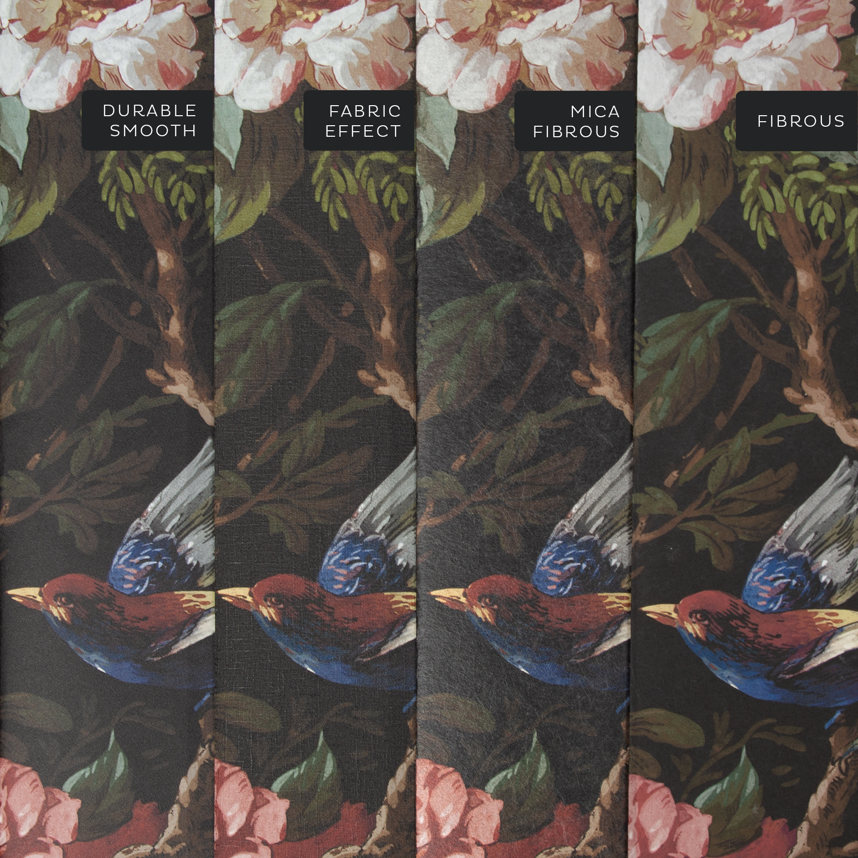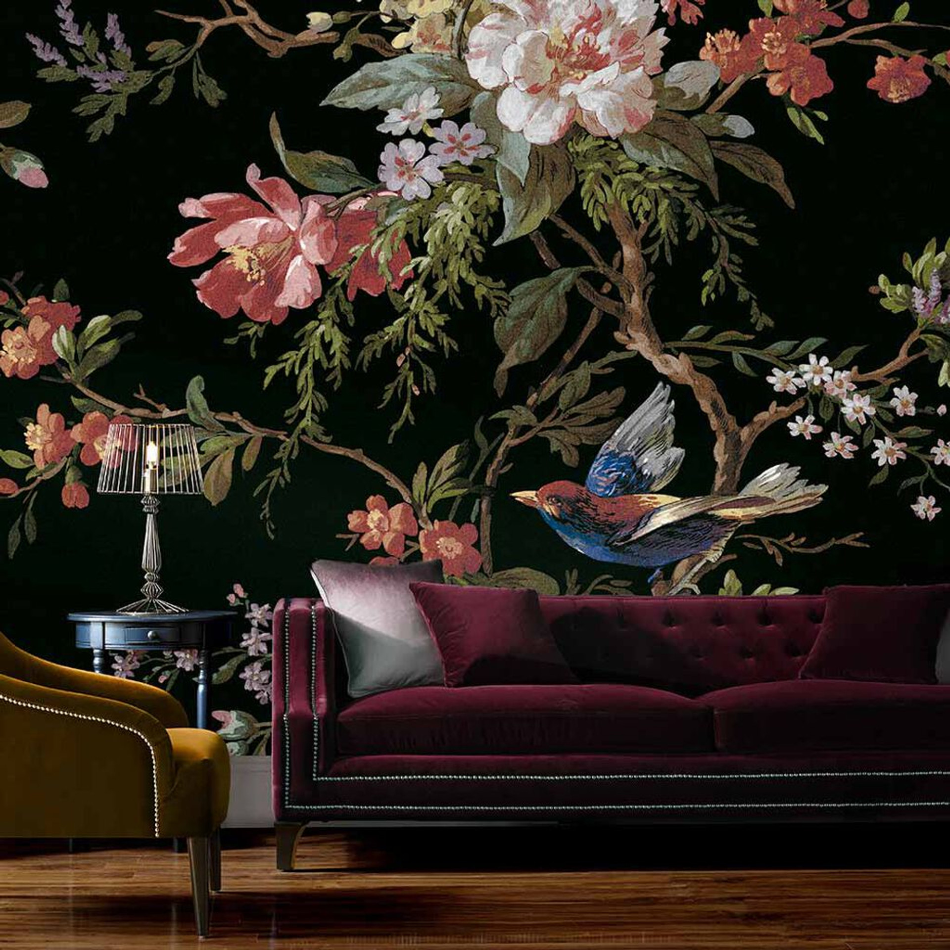 Klasszikus inda és virág minta jelenik meg a fotótapétán, melyet egyedivé varázsol a középpontban megjelenő énekes madár. Kifinomult, elegáns látványt teremt az enteriőrben, melynek szépsége magával ragadó látványt nyújt.