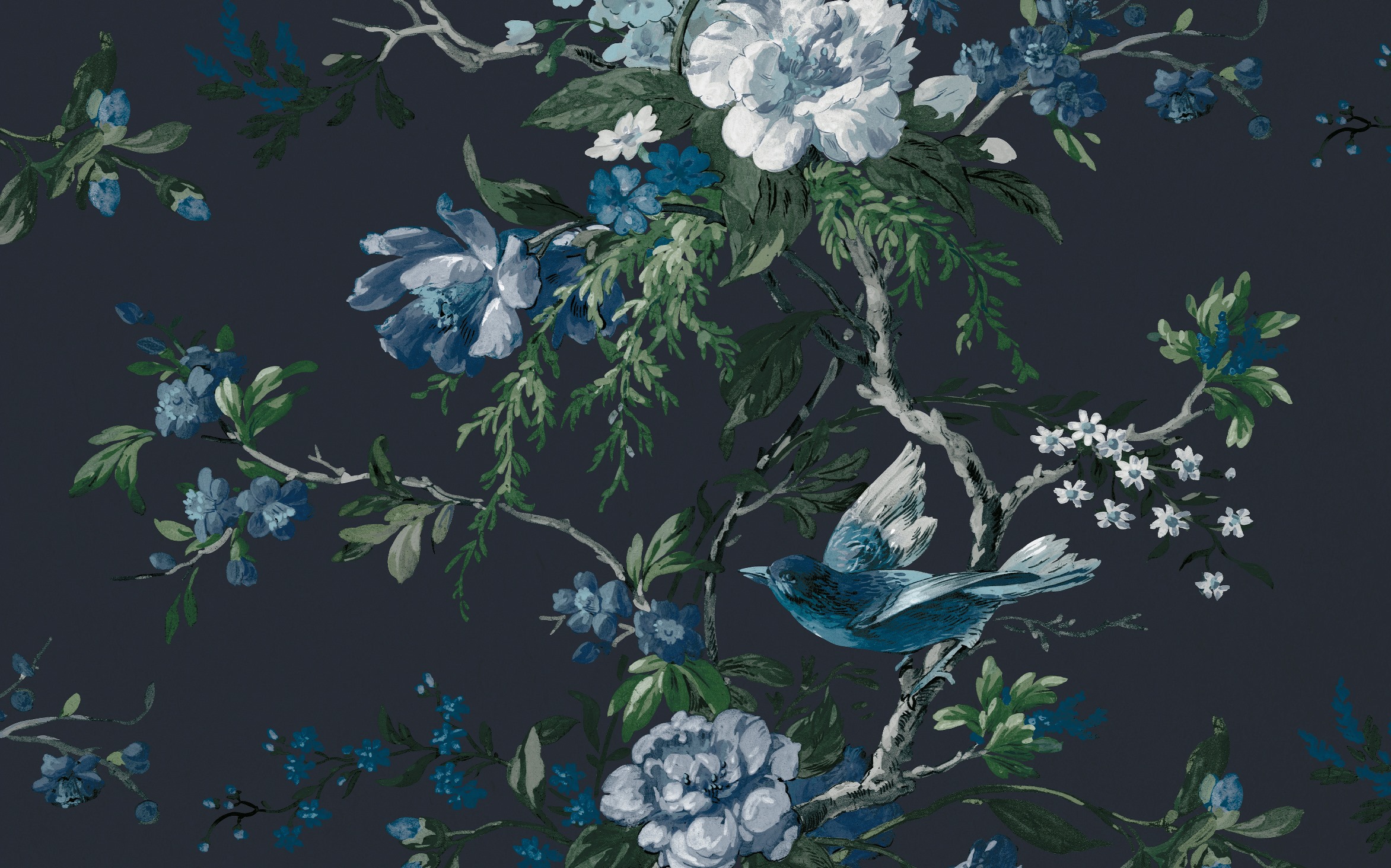 Klasszikus inda és virág minta jelenik meg a fotótapétán, melyet egyedivé varázsol a középpontban megjelenő énekes madár. Kifinomult, elegáns látványt teremt az enteriőrben, melynek szépsége magával ragadó látványt nyújt.