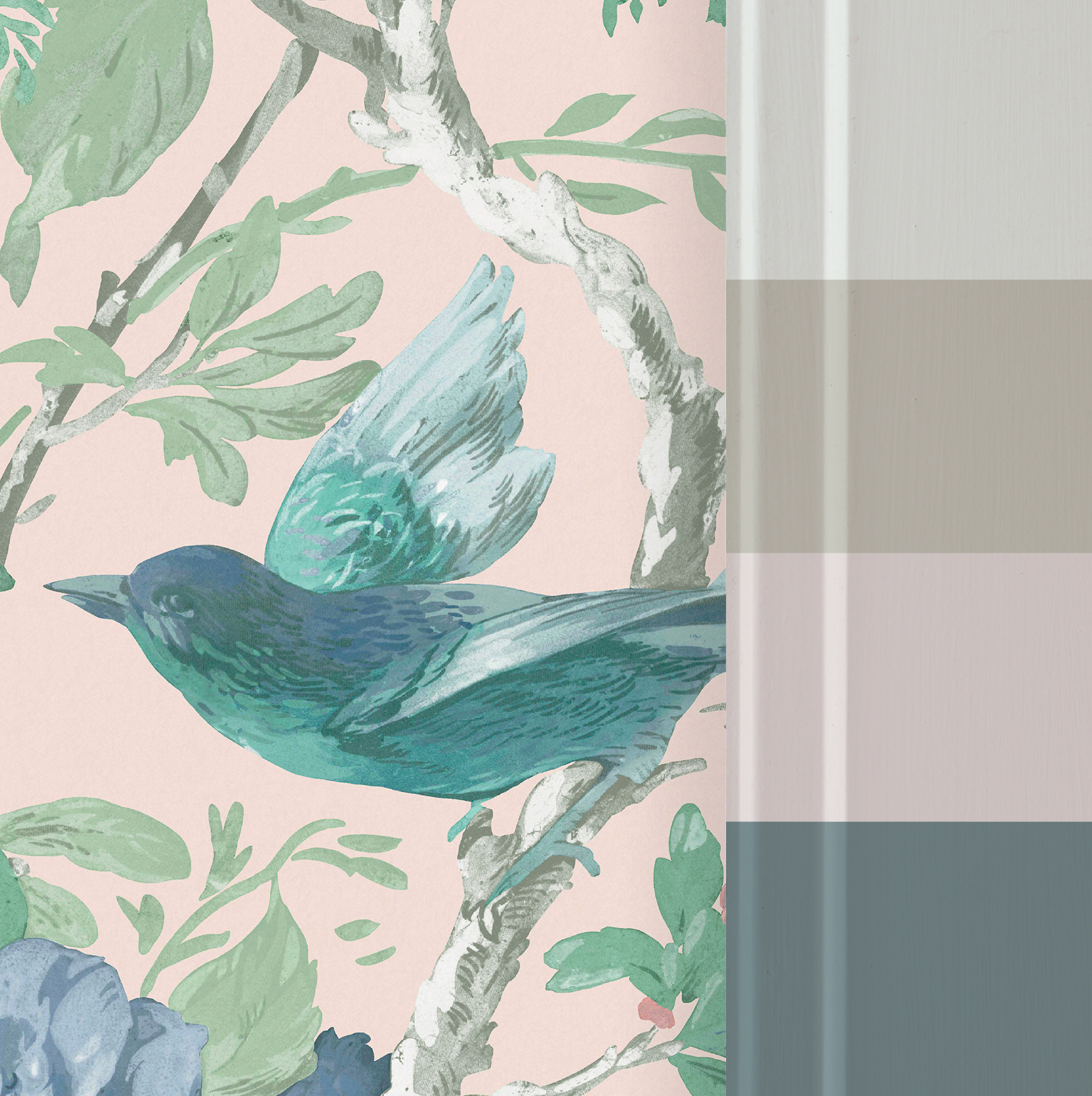 Klasszikus inda és virág minta jelenik meg a fotótapétán, melyet egyedivé varázsol a középpontban megjelenő énekes madár. Kifinomult, elegáns látványt teremt az enteriőrben, melynek szépsége magával ragadó látványt nyújt.