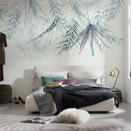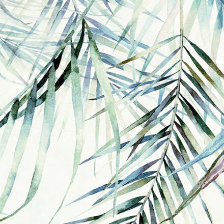 Egzotikus levélmintát keresel, de nem akarod dzsungellé változtatni a szobát? A Palm Spring tapéta könnyed, vékony leveleivel izgalmas dekorációt teremt, ugyanakkor nem uralja a teret sűrű növényzetével. Az élénk, kékes színek üde frissességet árasztanak a helyiségben.