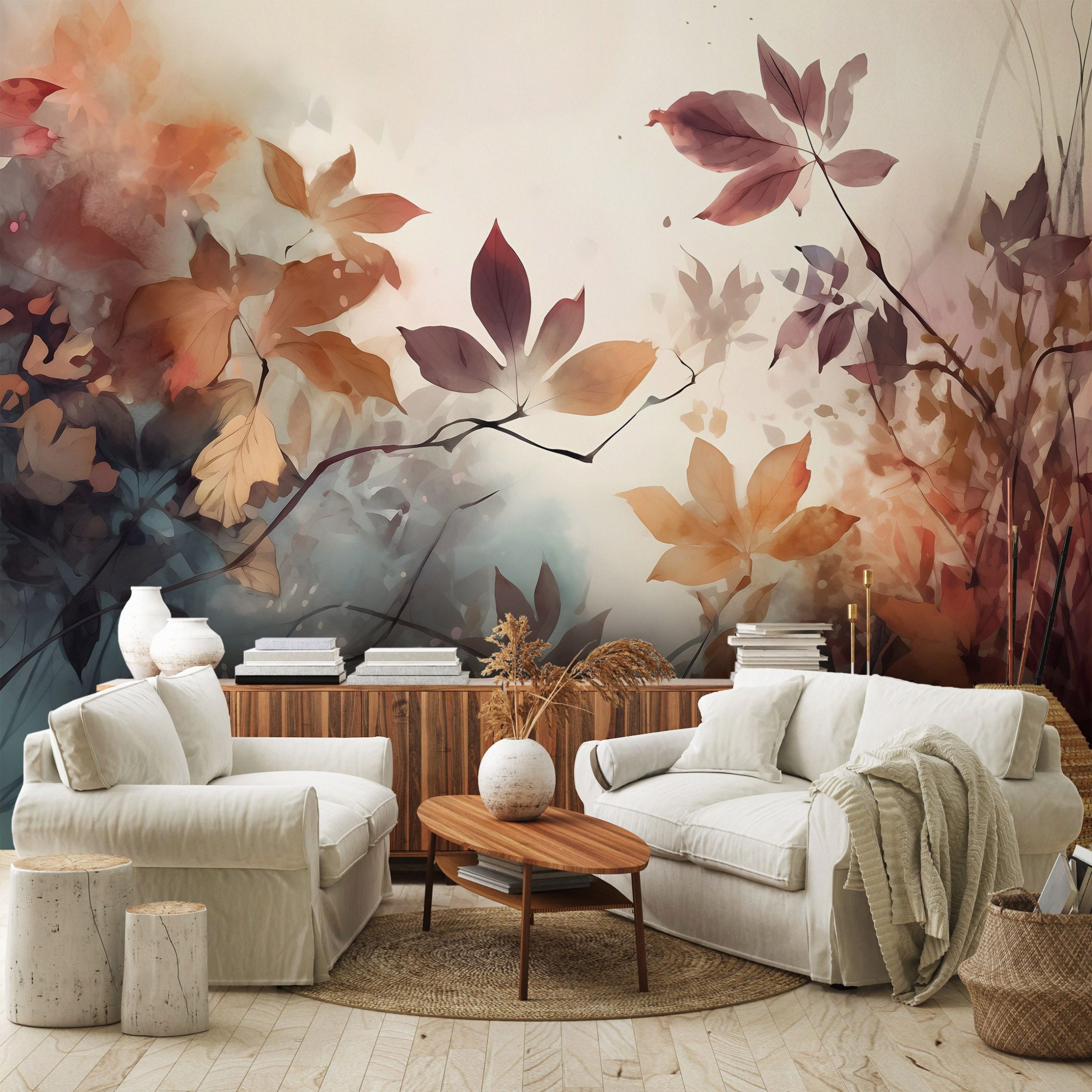 Levélmintás vlies fotótapéta őszies színvilágban, melynek kellemes színvilága átformálja otthonod hangulatát.