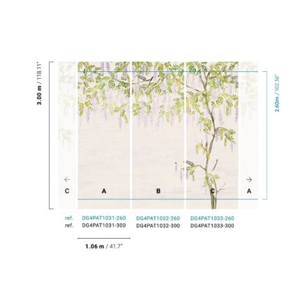 A tapéta sorolható, így több panel is egymás mellé helyezhető mintaillesztéssel.