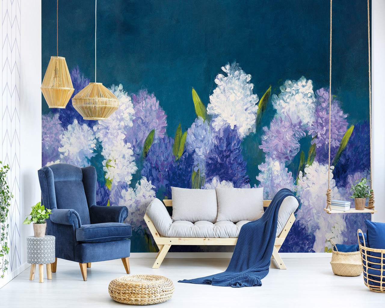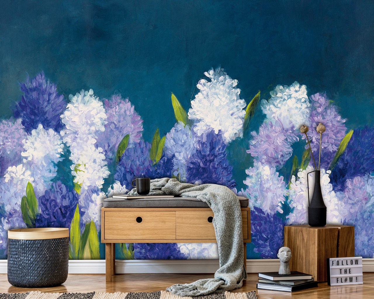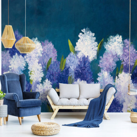 Festményszerű fotótapéta, melynek akvarelles virágai romantikus atmoszférát teremtenek az enteriőrben.