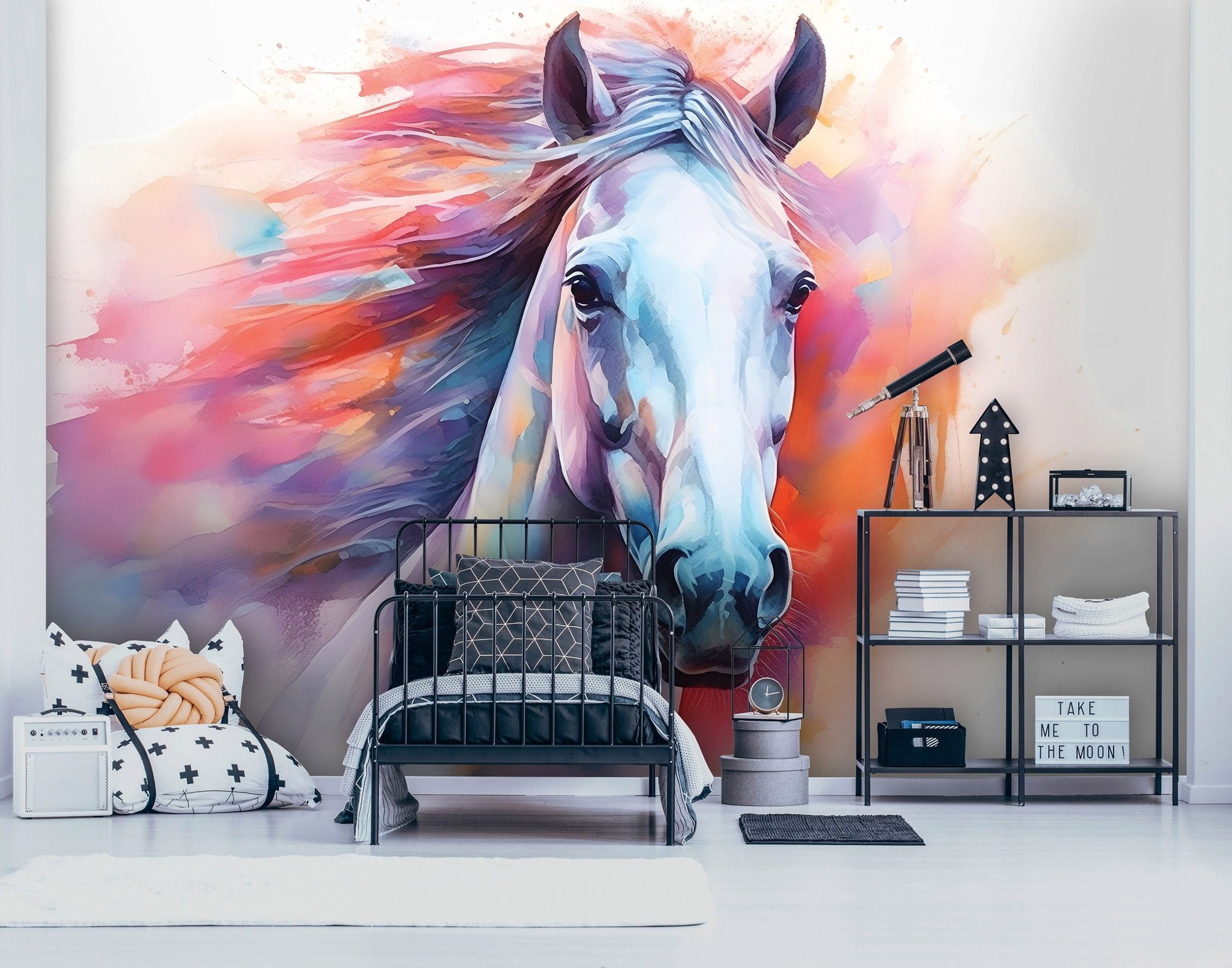 A lovak tiszta, zabolátlan szépsége tükröződik a fotótapétán.