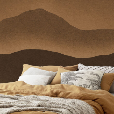 Sivataghoz hasonló hegyvonulatok futnak végig a fotótapétán, melyet beragyog a naplemente. Nyugalmat sugárzó látványt nyújt a falon a letisztult vonalvezetésével és meleg árnyalataival.
