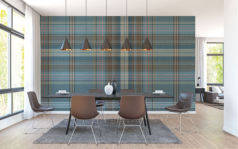 Kék barna skót kockás fotótapéta, mely az angol cottage stílust idézi. Melegséget árasztó színei jól használhatóak a lakás minden helyiségében. A fotótapéta sajátossága, hogy egymás mellé sorolható, így a minta illesztődik, és nagy felület tapétázására is alkalmas.