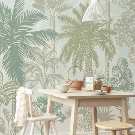 A dzsungelt hozza el otthonunkba a fotótapéta, melyen a pálmafák sora színezi át a fehér falat. Csodaszép pasztell színek, melyek kellemesen párosulnak az egzotikus látvánnyal.