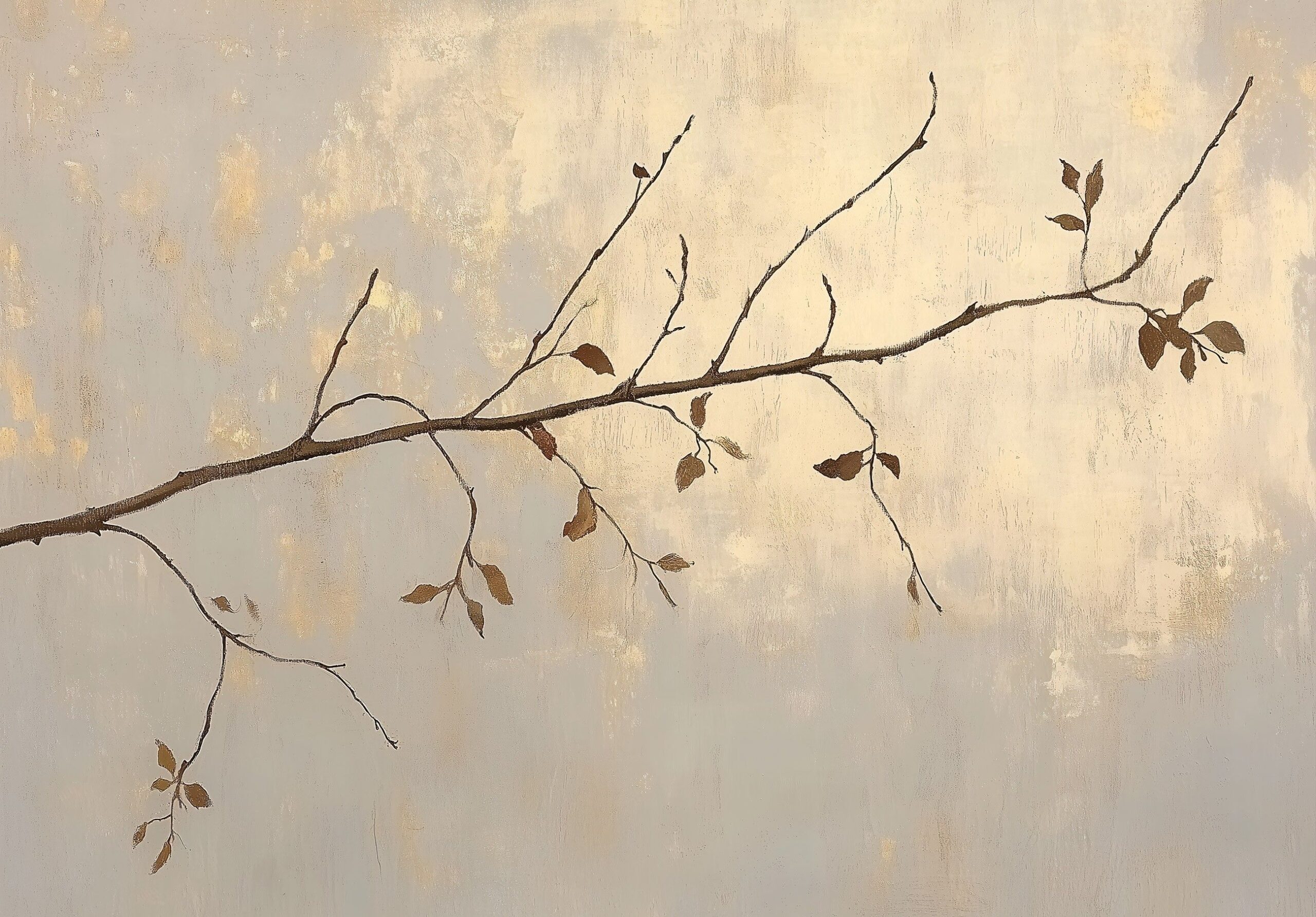 Minimalista ág mintás fotótapéta elegáns és letisztult választás, amely békét és harmóniát sugároz. Finom vonalai és visszafogott színvilága stílusos kiegészítője lehet modern és minimalista enteriőröknek.