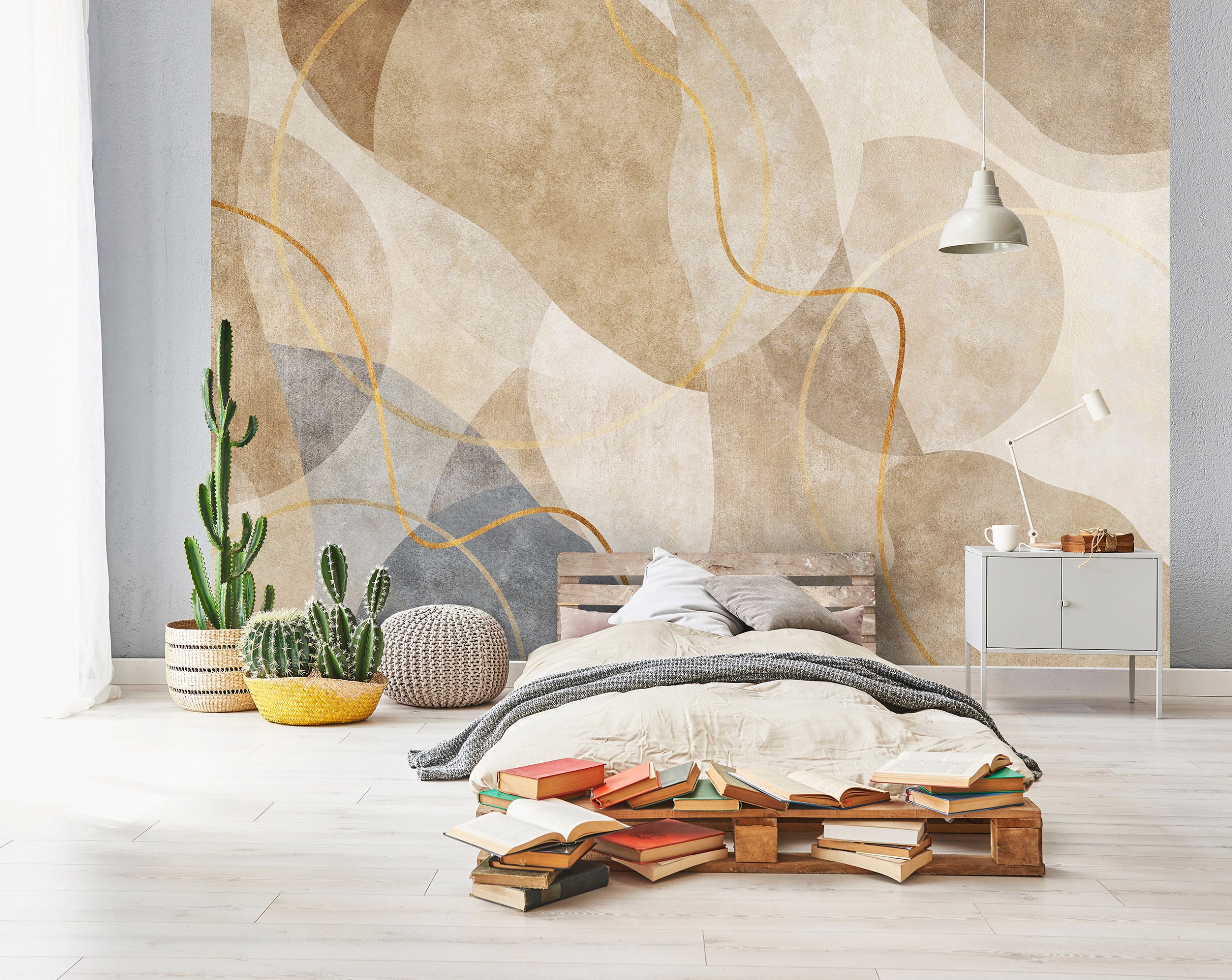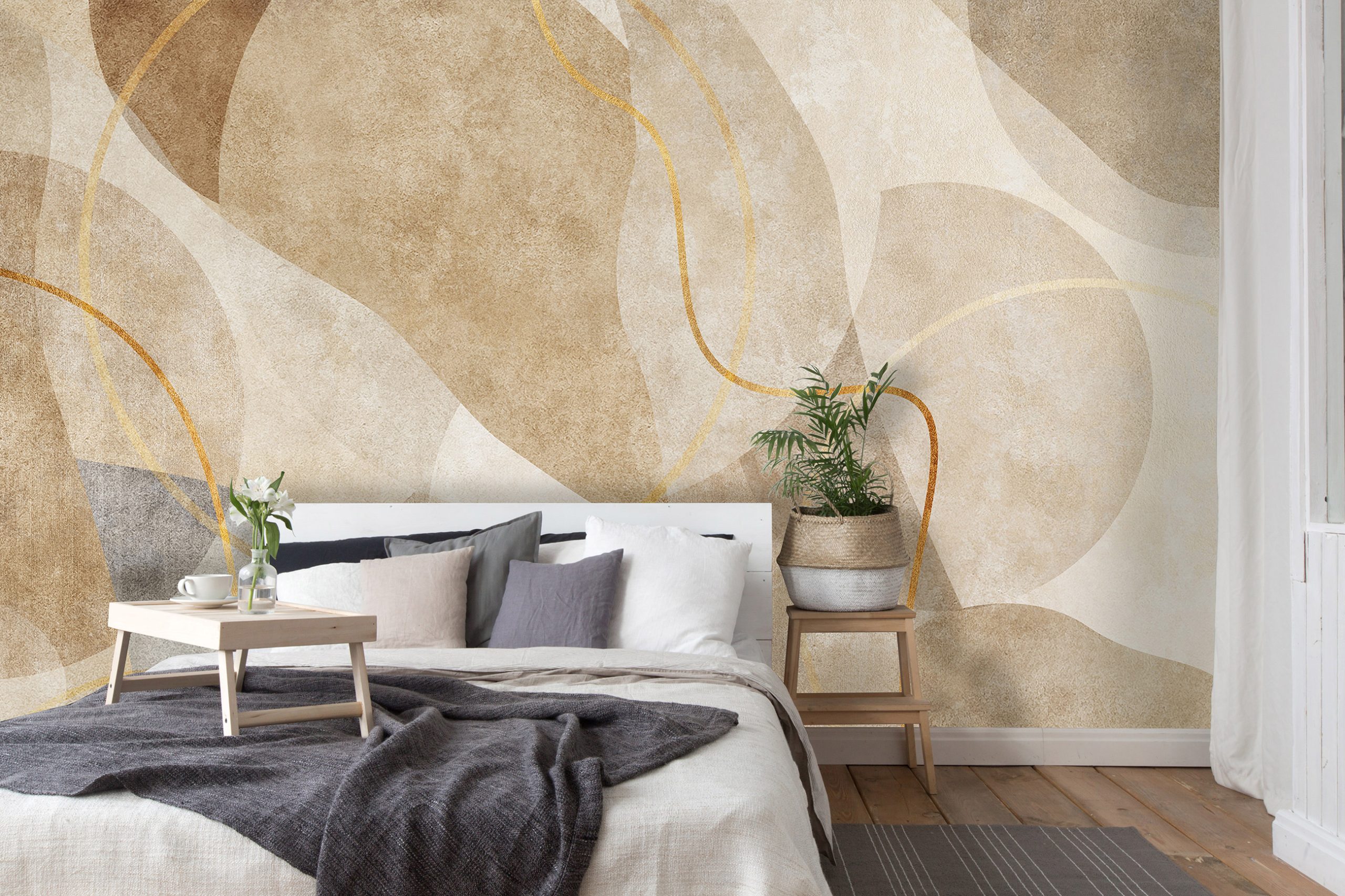 Az absztrakt mintás fotótapéta remekül illik modern, akár minimál stílusú otthonokba. A barnás árnyalatban megjelenő fotótapéta otthonos melegséget teremt.