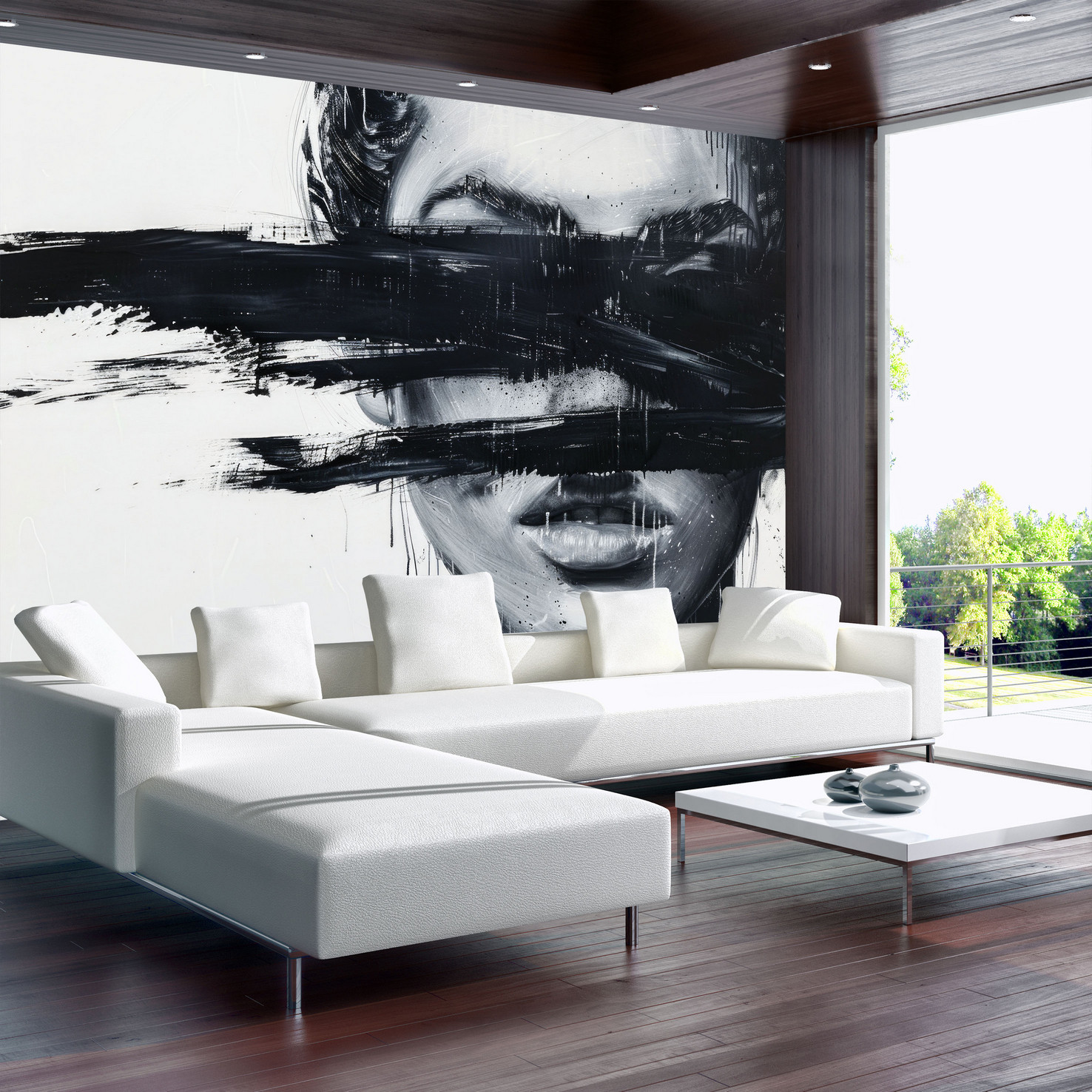 Modern fotótapéta női arc motívummal, mely izgalmas színfoltja lesz az enteriőrnek.