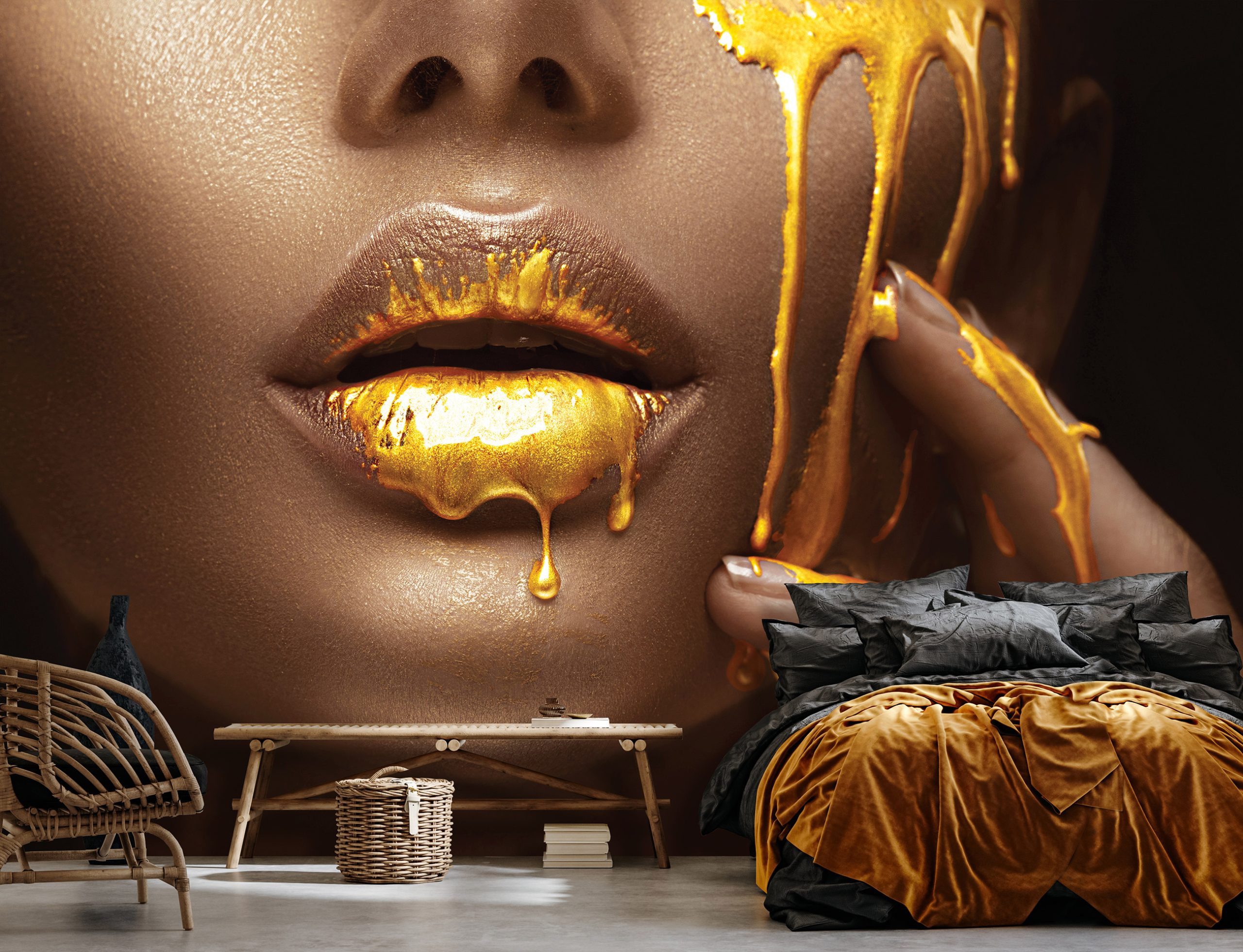 Trendi, női arcképet megjelenítő fotótapéta, melynek egyedisége meghatározó pontja lesz az enteriőrnek.