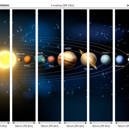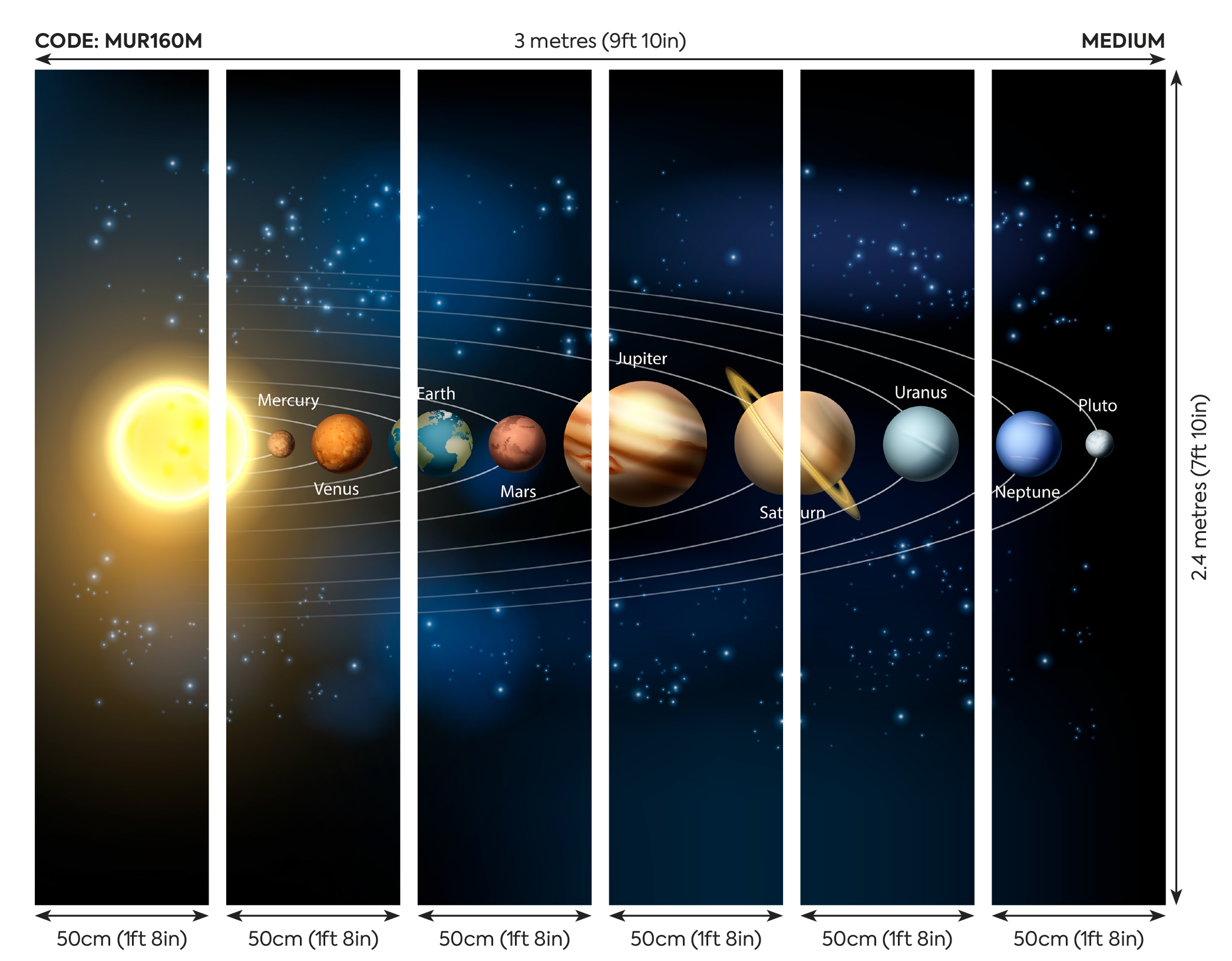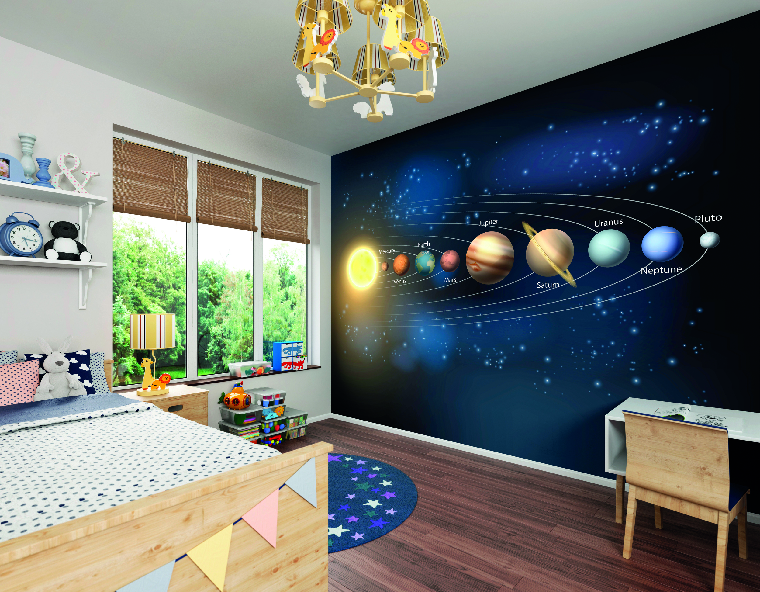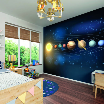 Tudományos érdeklődéssel rendelkező fiatalok számára ajánljuk a Naprendszert ábrázoló fotótapétát.