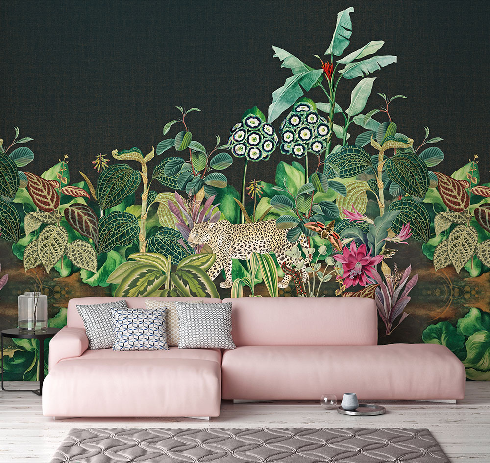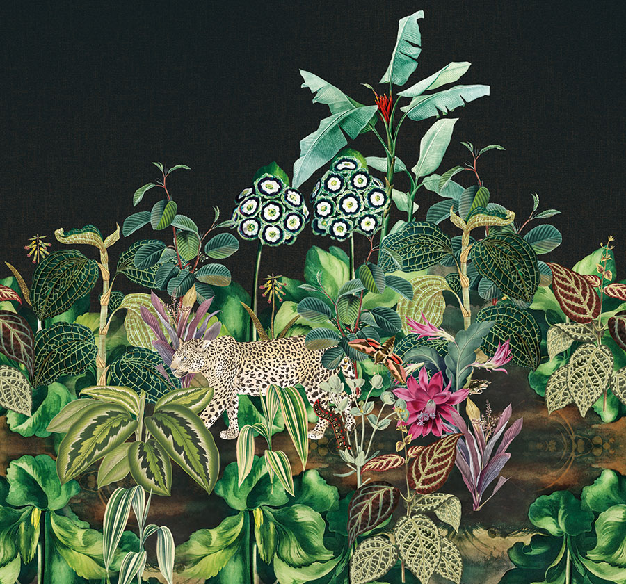 Fekete alapszínen éles kontrasztot képezve jelenik meg a trópusi erdők képe. Az egzotikus növények tövében megbúvó gepárd a természet nemes vadságát képviseli.