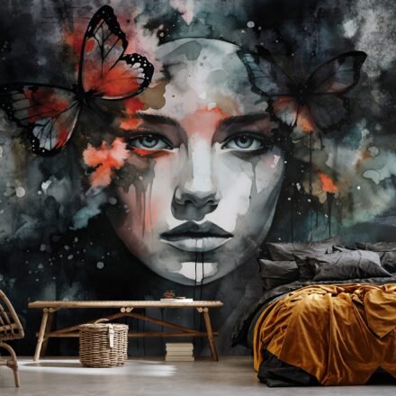 Egyediséget és igazi WOW élményt teremt az enteriőrben a nagy méretű fotótapéta, melyen női arc akvarell formája látható.