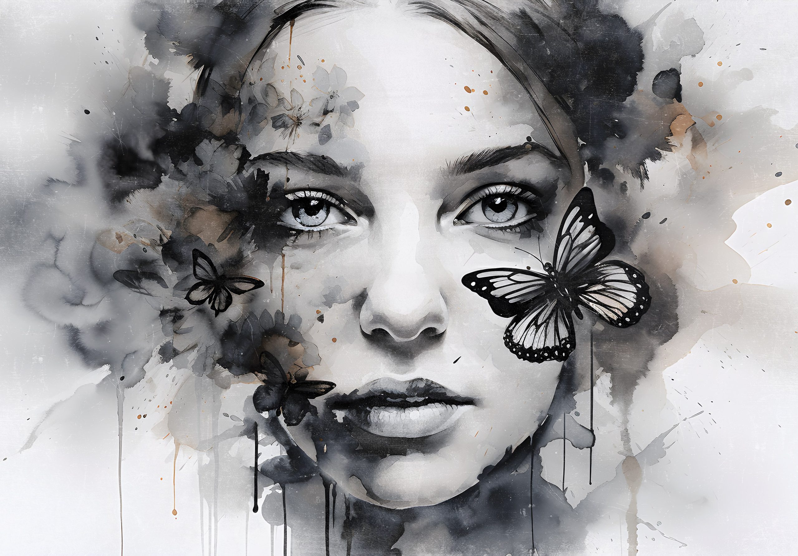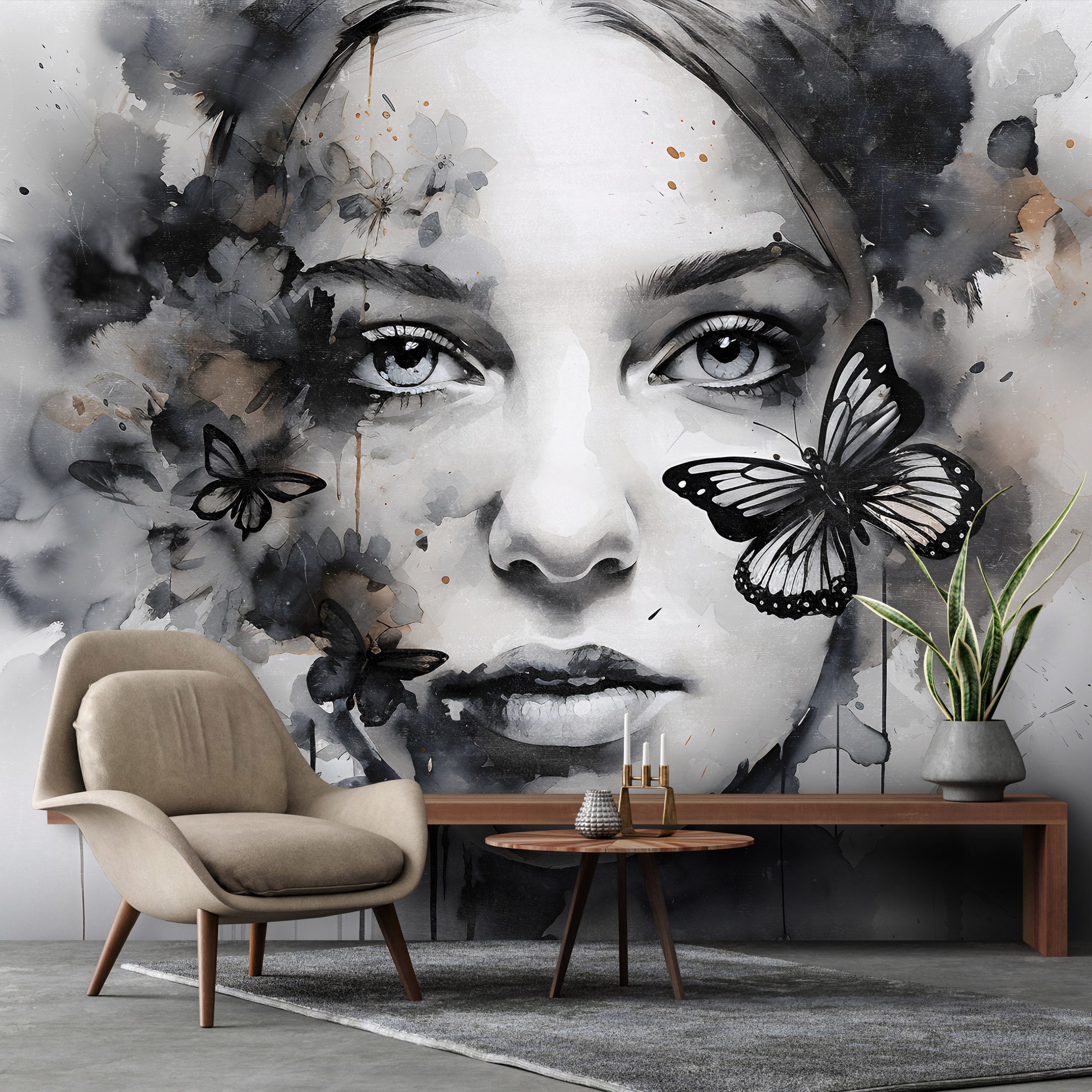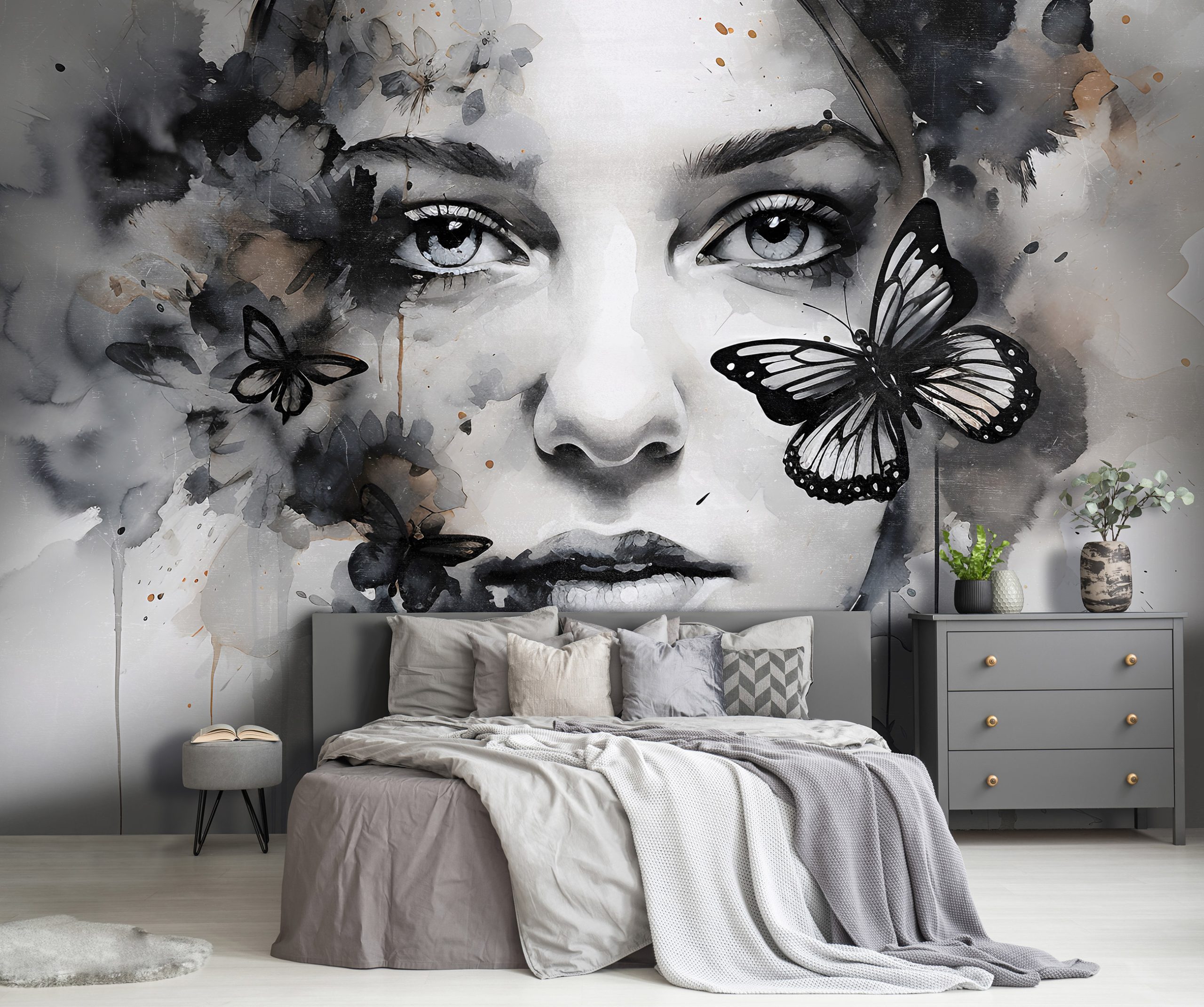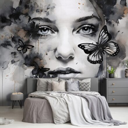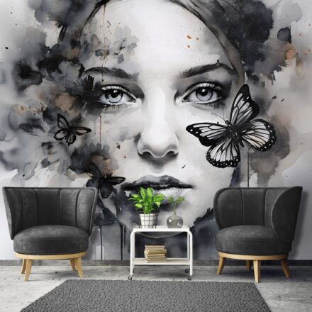 Egyediséget és igazi WOW élményt teremt az enteriőrben a nagy méretű fotótapéta, melyen női arc akvarell formája látható.