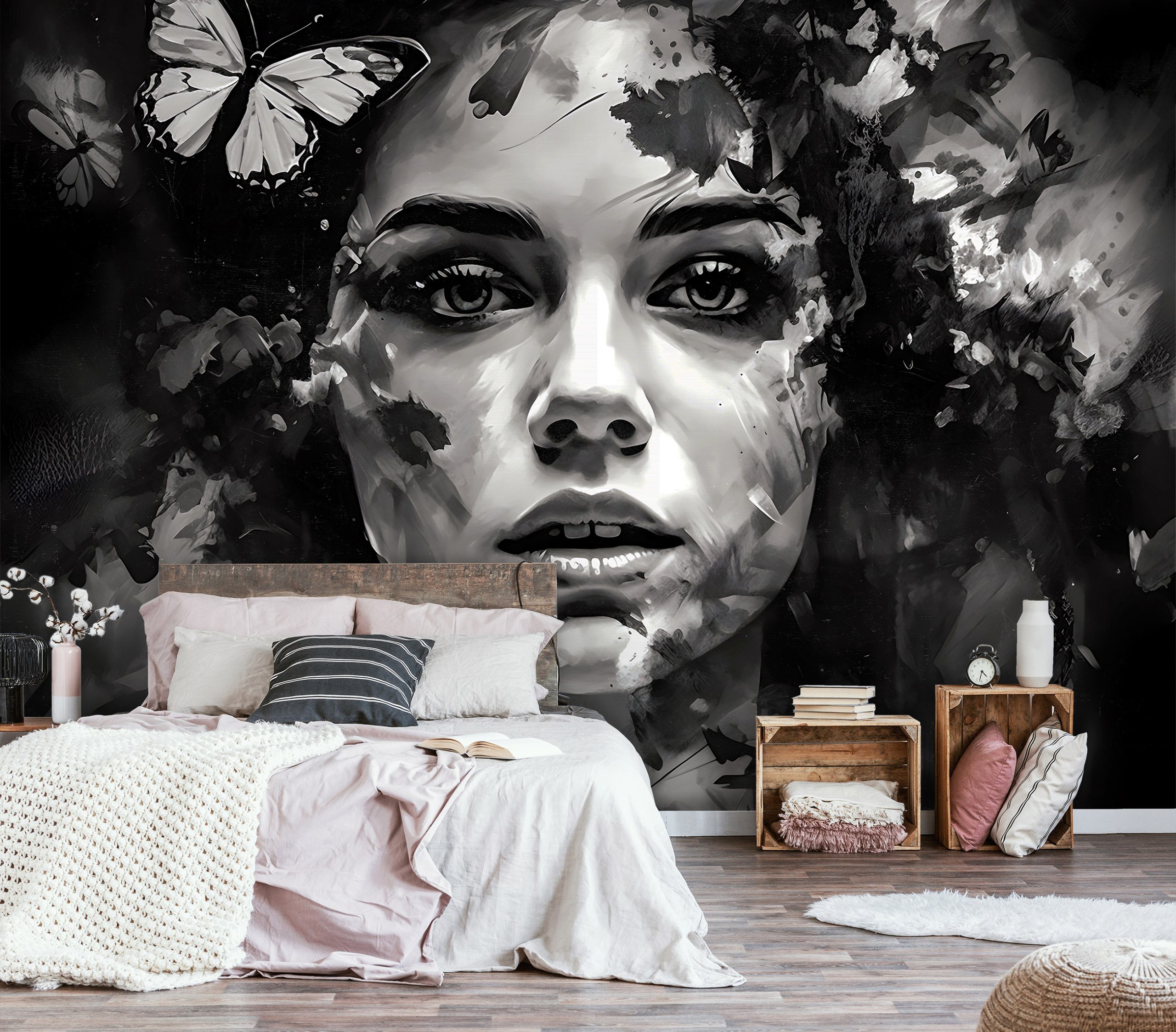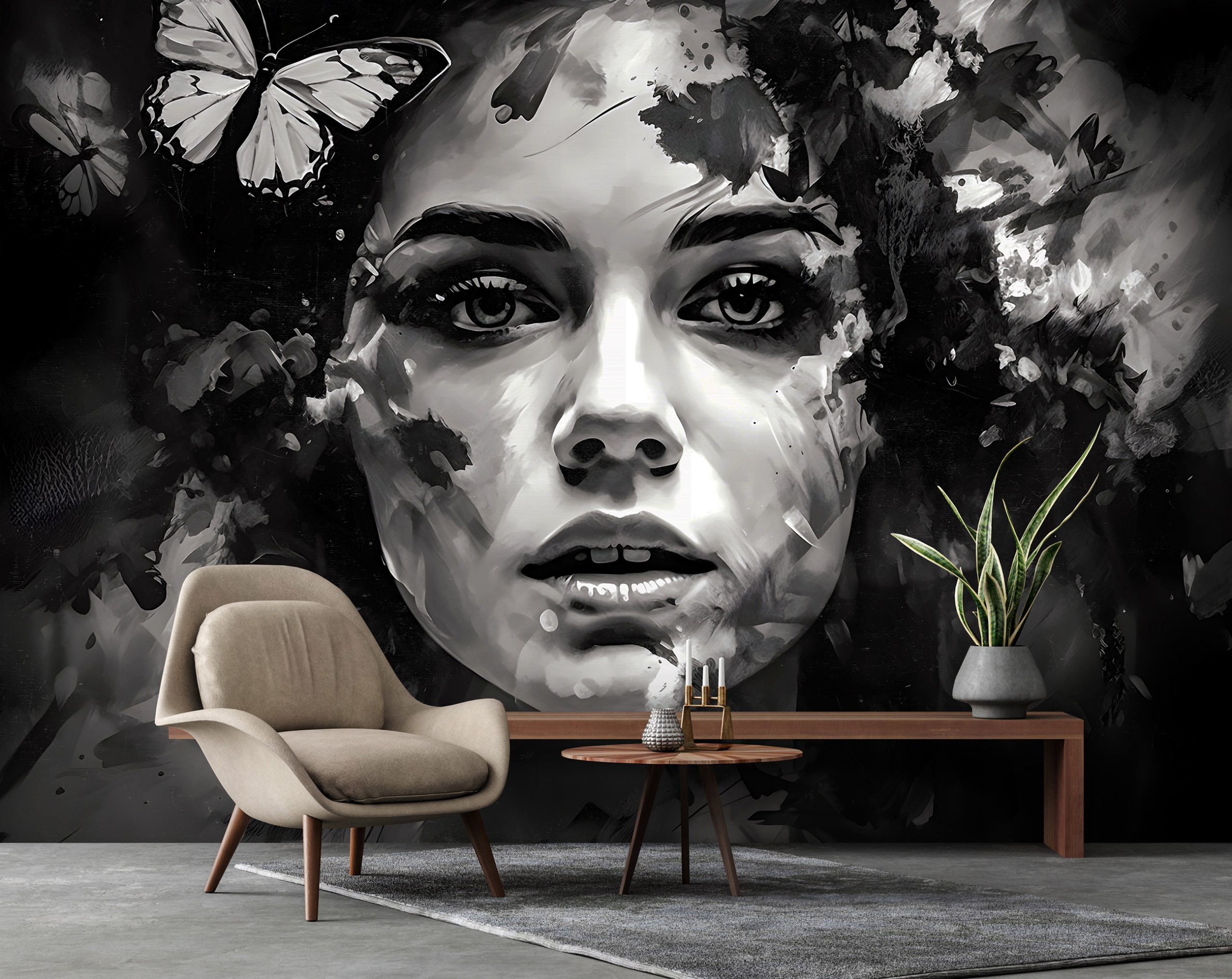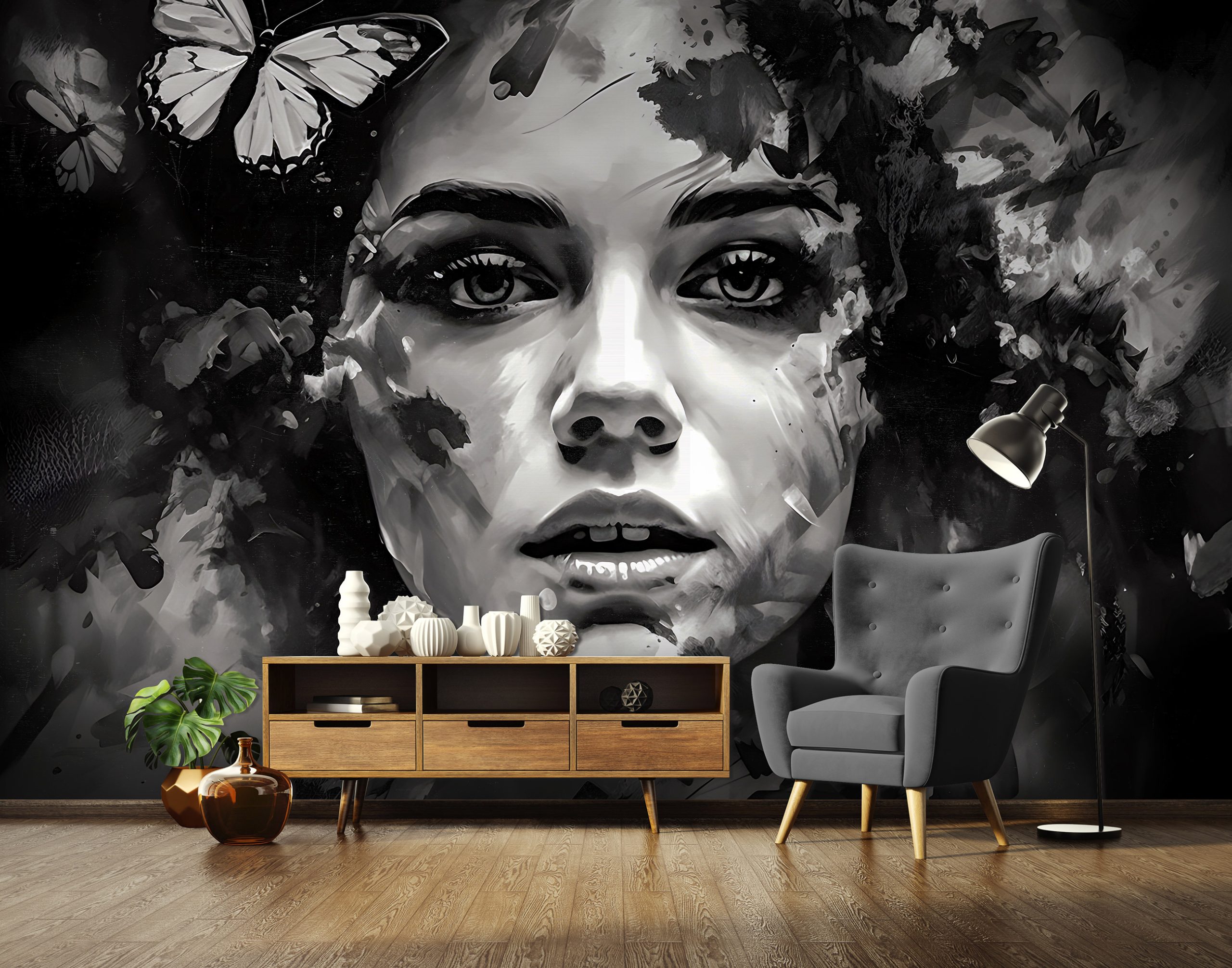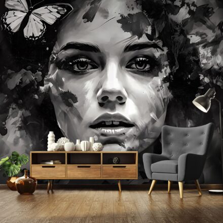Egyediséget és igazi WOW élményt teremt az enteriőrben a nagy méretű fotótapéta, melyen női arc akvarell formája látható.