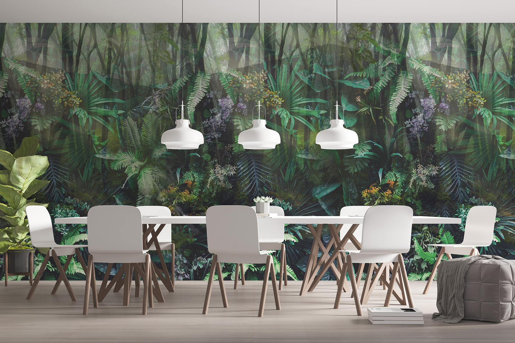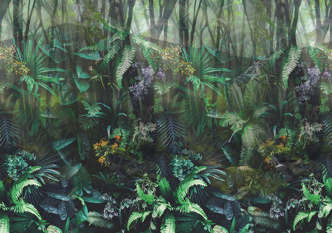 Óriás fotótapéta, melynek egzotikus képét színpompás pálmafák, páfrányok és virágok teszik fantasztikusan széppé.