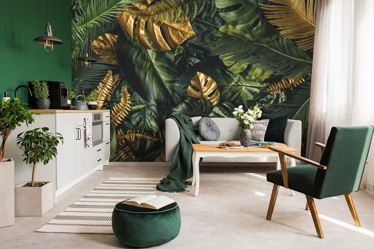 Látványos levélmintás fotótapéta, melynek egymásba fonódó levelei 3d hatással bírnak.
